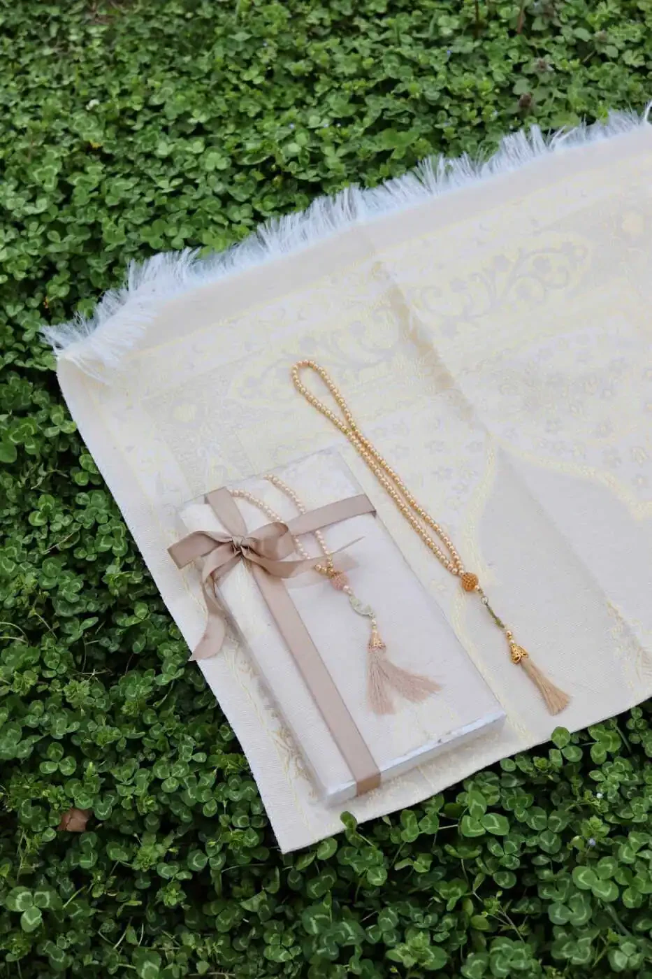 Этот подарочный хлопковый набор молитвенных ковриков станет идеальным подарком для ваших особенных дней. Благодаря своей уникальной текстуре из мягкой и высококачественной хлопковой ткани этот коврик привлекает внимание своим стильным внешним видом. Более того, вместе с жемчужными четками рядом с ним этот набор станет незабываемым подарком для ваших близких.