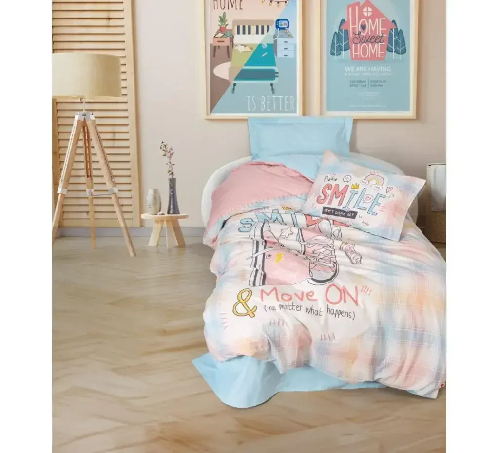 **Комплект постельного белья Cotton Box Youthful Ranforce на одну персону Smile Mint****Приготовьтесь к блаженному и освежающему ночному сну!**Изготовленный из 100% хлопка, комплект постельного белья Cotton Box Youthful Ranforce дарит коже нежное прикосновение благодаря своей мягкой текстуре и воздухопроницаемости. Узор Smile Mint добавит свежести и игривости вашей постели, сделав часы сна более приятными.**Размеры изделия:*** Пододеяльник: 160x220 см* Простыня на резинке: 160x240 см* Наволочка: 50x70 см**Характеристики:*** Материал: 100% хлопок* Качество строчки: 120 стежков/10 см* Техника печати: Реактивная печать* Плотность ткани: 110 гр/м²**Рекомендации по уходу:*** Машинная стирка в теплой воде (30 градусов) наизнанку.* Не используйте отбеливатель.* Сушите в сушильной машине при низкой температуре.