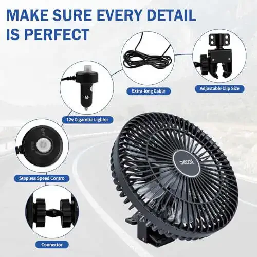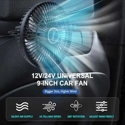 - ВЫСОКОСКОРОСТНОЙ БЕССТУПЕНЧАТЫЙ КОНТРОЛЬ СКОРОСТИ: 9-дюймовый вентилятор XOOL обеспечивает мощный воздушный поток для превосходного охлаждения автомобиля. Благодаря бесступенчатой регулировке скорости вы можете свободно настраивать интенсивность ветра по своему вкусу. Никаких фиксированных настроек, только легкий комфорт, адаптированный к вашим потребностям.