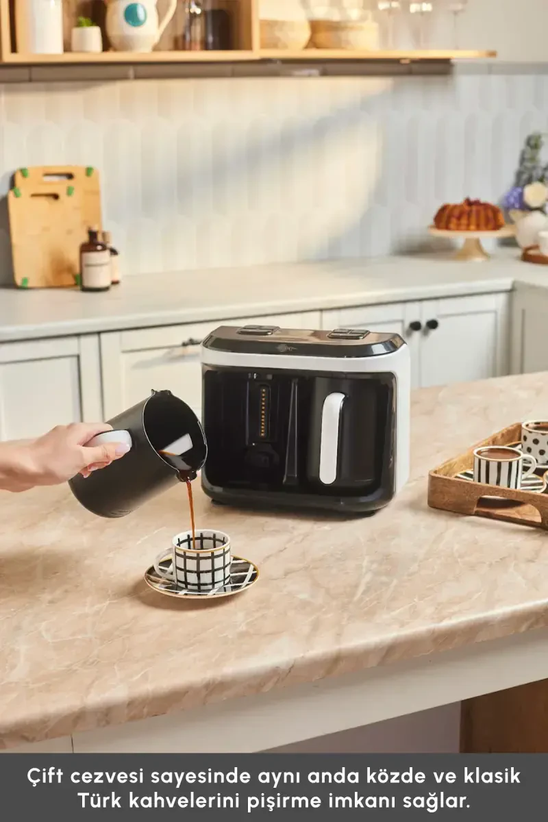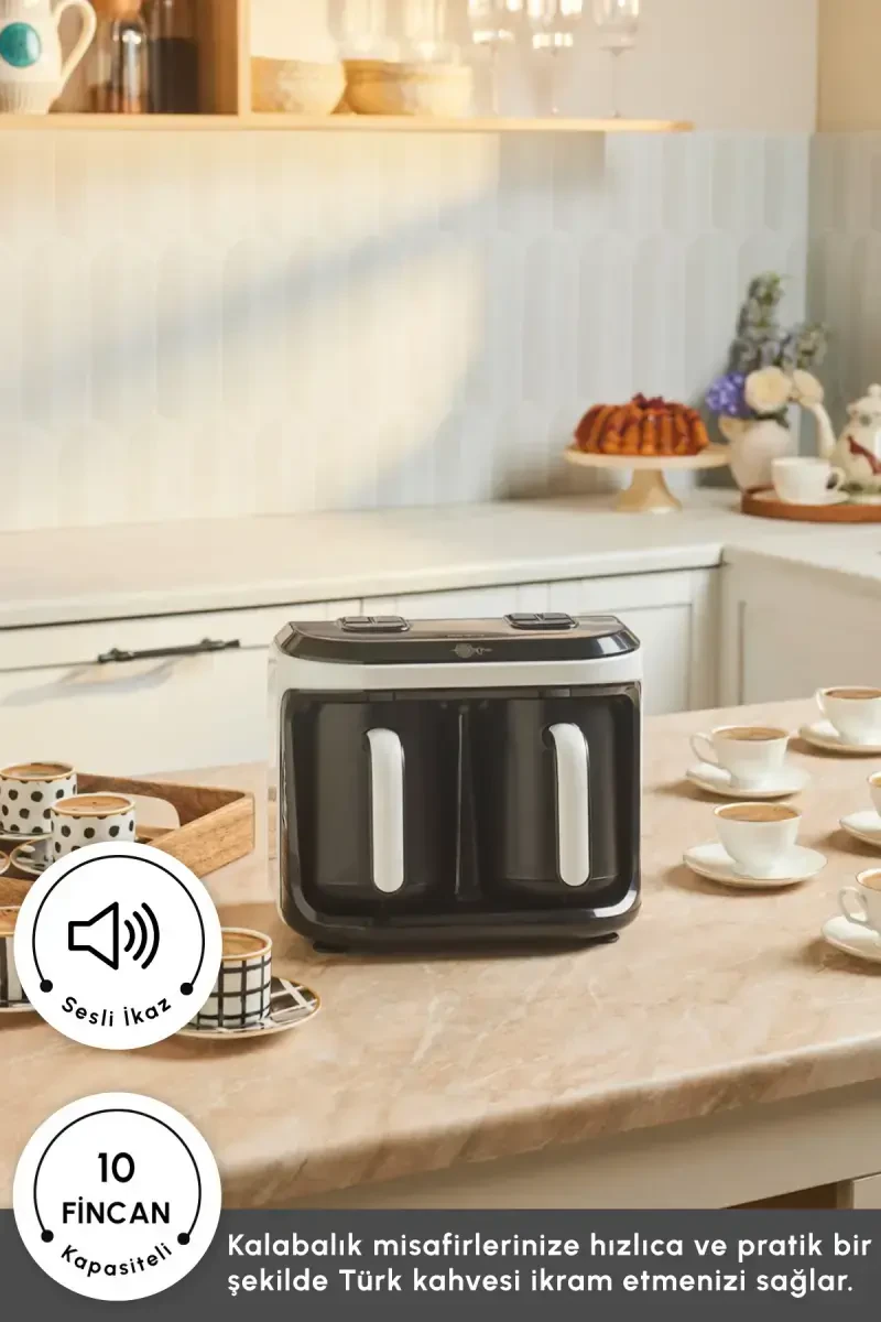 Turk qahva mashinasi, Hatır Hüp Düet, ikkilik qahva mashinasi, aroma texnologiyasi, 10 chashka sig'imli, oq qahva mashinasi, oson tozalanadigan, toshib ketishning oldini oluvchi, turk qahvasi, qahva mashinasi