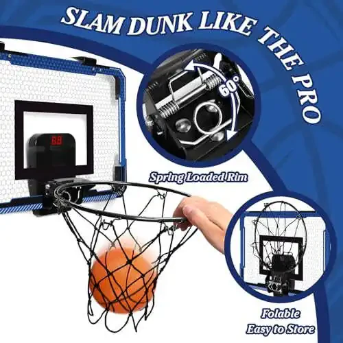 Xucutu Indoor Mini Basketball Hoop for Door - Over The Door Basketball Mini Hoop with Balls, Foldable Basketball Hoop for Wall & Room Basketball Toy Gift for Boy Kids Teens