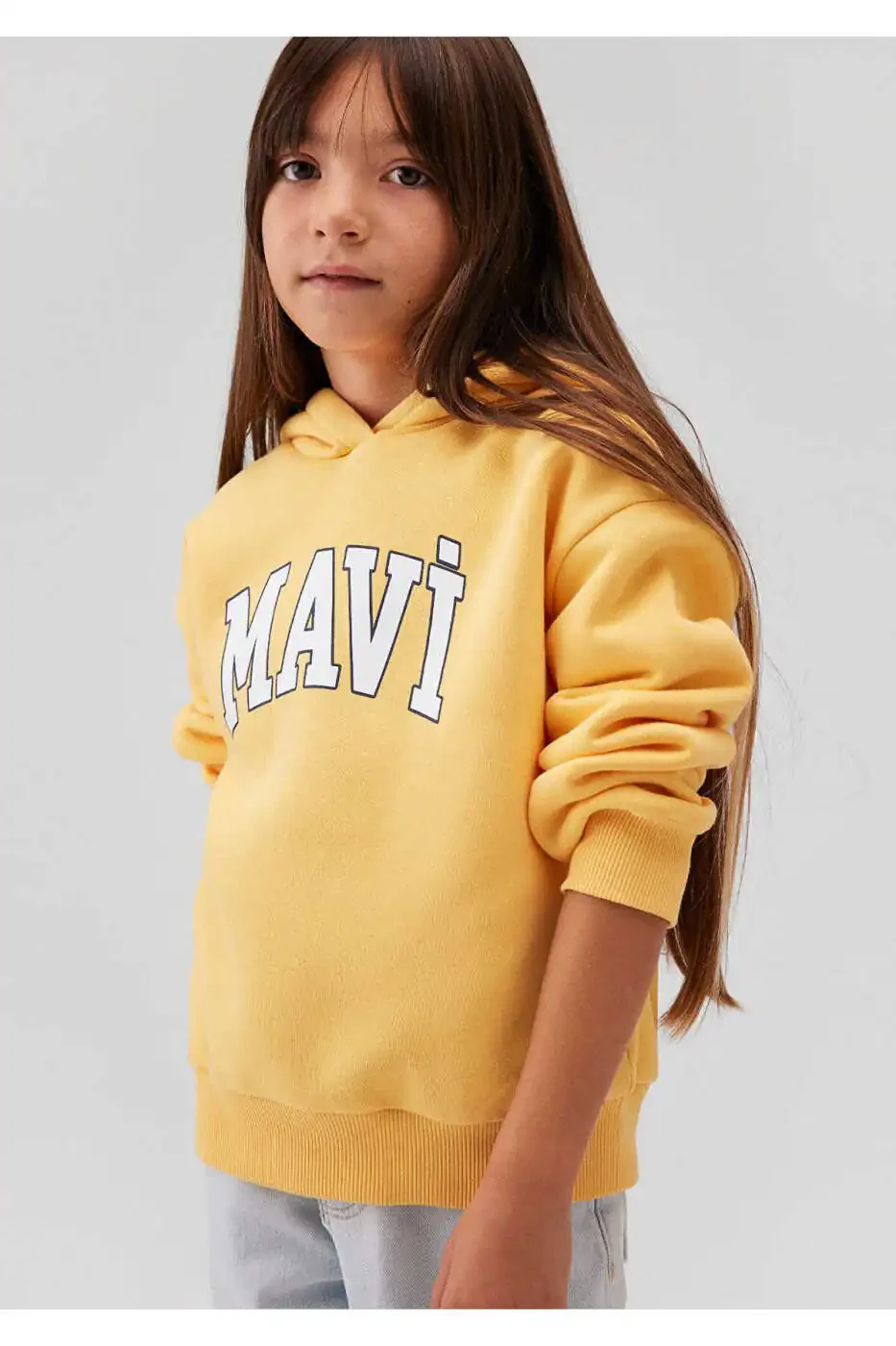 **Логотипная желтая толстовка с капюшоном**Стильная и удобная желтая толстовка с капюшоном с логотипом от Mavi из детской коллекции станет незаменимым предметом гардероба.**Характеристики продукта:*** **Бренд:** Mavi* **Модель:** Толстовка с капюшоном с логотипом* **Цвет:** Желтый* **Рисунок:** Логотипный принт* **Капюшон:** С капюшоном* **Ткань:** 65% хлопок, 35% полиэстер* **Покрой:** Свободный крой* **Талия:** Обычная талия* **Тип ткани:** Вязаный* **Рукав:** Стандартный**Детали:*** Разработана специально для **девочек**.* **Флисовая** ткань для мягкости и комфорта.* **Свободный крой** обеспечивает свободу движений.* **Принт с логотипом** добавляет нотку шика.* **Капюшон** обеспечивает защиту от ветра и холода.В этой яркой толстовке ваш ребенок будет чувствовать себя и стильно, и комфортно. Она универсальна и может носиться в разных ситуациях, от повседневной носки до особых выходов.**Важные примечания:*** Максимальное количество заказа **10 штук**.* У вас есть право на **бесплатный возврат в течение 15 дней**.