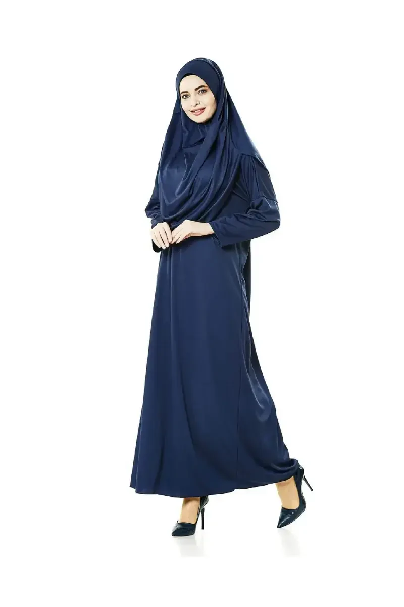 - Bir qismli namoz libosi: 36-44 (standart) va 46-52 (battal) o'lcham oralig'ini qamrab oluvchi moslashuvchan o'lcham variantlari bilan taqdim etiladi. Jarse likrali matosi tufayli dazmollashni talab qilmaydi va ajin tushmaydi.