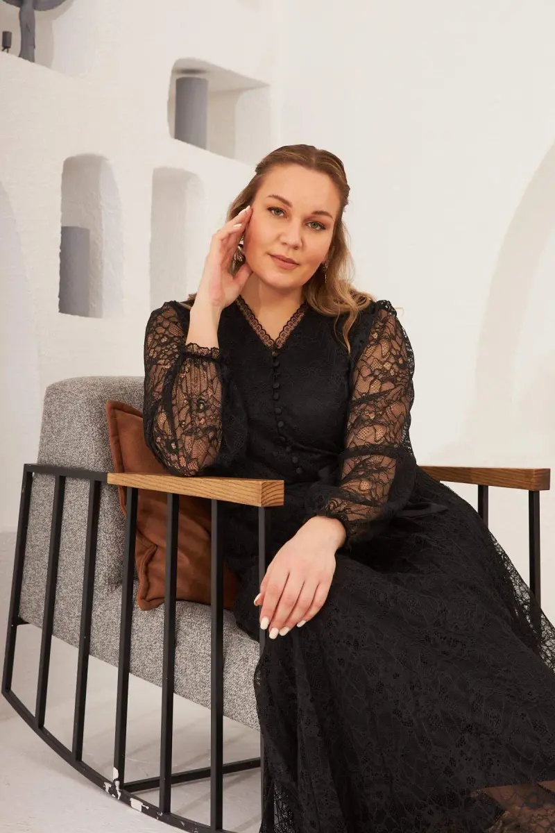 Yoqa detallari bilan katta o'lchamdagi qora dantelli ko'ylak bilan yozgi nafosatingizga nafislik qo'shing. Ushbu maxsus dizayndagi ko'ylak katta o'lchamdagi ayollarning go'zalligini ta'kidlaydi va ayni paytda qulaylikni ta'minlaydi. Ko'ylakning qora rangining nafisligi va dantel detallarini birlashtirgan dizayni har qanday muhitda e'tiborni tortadi. Maxsus tadbirlardan kundalik foydalanishgacha bo'lgan keng doiradagi ushbu ko'ylak garderobingizning ajralmas qismiga aylanishga nomzod.Ko'ylakning yoqa qismidagi dantel detallari ayollik havosi beradi, qora rang esa nafislik va nafislikni ifodalaydi. Katta o'lchamdagi kesim tana chiziqlaringizni mukammal tarzda o'rab, o'zingizni yanada ishonchli his qilishingizga imkon beradi. Yuqori sifatli to'qilgan polyester matosi tufayli u ham qulay foydalanishni ta'minlaydi, ham uzoq muddatli mahsulot tajribasini taqdim etadi. Matoning engil va nafas oladigan tuzilishi, ayniqsa yoz oylarida terlash muammosini bartaraf etadi va kun bo'yi tetiklikni saqlaydi.Modeldagi 44 o'lchamdagi namuna ko'ylakning katta o'lchamdagi ayollardagi ko'rinishini eng yaxshi tarzda aks ettiradi. Uzunligi 155 sm bo'lgan ushbu ko'ylak ham zamonaviy, ham qulay foydalanishni ta'minlaydi va turli xil poyabzal va aksessuarlar bilan osongina birlashtirilishi mumkin. Xoh baland poshnali poyabzal bilan maxsus tadbirga tashrif buyuring, xoh sandal bilan kundalik nafosatingizni to'ldiring, yoqa detallari bilan katta o'lchamdagi qora dantelli ko'ylak har qanday vaziyatda sizga hamroh bo'ladi.Bu yozda uslubingizni gapiring va yoqa detallari bilan katta o'lchamdagi qora dantelli ko'ylak bilan farq yarating. Ham zamonaviy, ham qulay bo'lishdan zavqlanib, o'zingizni maxsus his qiladigan ushbu ko'ylakni o'tkazib yubormang. Garderobingizning eng sevimli qismiga aylanishga tayyor bo'ling!