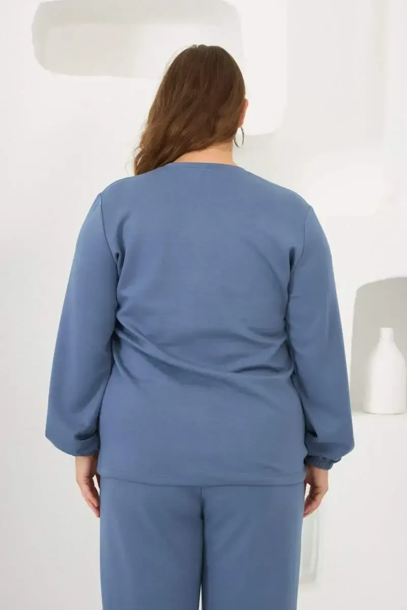 Yaka Detaylı Kol ve Eteği Büzgülü Büyük Beden Sweat İndigo ile stilinizi ve konforunuzu bir araya getirin. Bu özel tasarım sweat, büyük beden giyimde aradığınız şıklığı ve rahatlığı sunuyor. İndigo renginin asaletini taşıyan bu sweat, yaka detayı ve kol ile etek kısmındaki büzgü detaylarıyla dikkat çekiyor. Günlük kullanımınızda, arkadaşlarınızla buluşurken veya hafta sonu aktivitelerinizde rahatlıkla tercih edebileceğiniz bu parça, gardırobunuzun vazgeçilmezi olacak. Kumaş içeriğindeki rayon, polyester ve elastan karışımı, hem yumuşak bir dokunuş sağlar hem de hareket özgürlüğünüzü kısıtlamaz. Dokuma kumaşın kalitesi, sweat'in uzun ömürlü olmasını ve şeklini korumasını sağlar. Modelin üzerindeki 44 beden, ürünün büyük beden kesimine uygunluğunu gösterirken, 75 cm'lik boyu ideal bir uzunluk sunar. Sonbahar ve kış aylarının serin havalarında sizi sıcak tutacak bu sweat, şıklığınızdan ödün vermeden konforlu bir deneyim yaşamanızı sağlar. Yaka detayı, sweat'e farklı bir hava katarken, kol ve etek büzgüleri feminen bir dokunuş ekler. Bu detaylar, basit bir sweat'i özel bir parçaya dönüştürür. İndigo rengi, farklı kombinler yapmanıza olanak tanır; kot pantolonlarla spor bir görünüm elde edebilir, şık bir etekle daha klasik bir tarz yaratabilirsiniz. Büyük beden giyimde doğru parçayı bulmak zorken, bu sweat size hem şıklığı hem de rahatlığı bir arada sunar. Kumaşın esnek yapısı, gün boyu rahat hareket etmenizi sağlar. İster evde dinlenirken, ister dışarıda aktivitelerde bulunurken, bu sweat size eşlik edecek. Yaka Detaylı Kol ve Eteği Büzgülü Büyük Beden Sweat İndigo, sadece bir giysi değil, aynı zamanda bir stil ifadesidir. Kendinizi iyi hissetmenizi sağlayacak bu parçayı gardırobunuza ekleyerek, her zaman şık ve rahat olabilirsiniz. Unutmayın, stil sadece kıyafetlerle değil, aynı zamanda kendinizi nasıl taşıdığınızla da ilgilidir. Bu sweat, size özgüveninizi artıracak ve her ortamda dikkat çekmenizi sağlayacaktır.