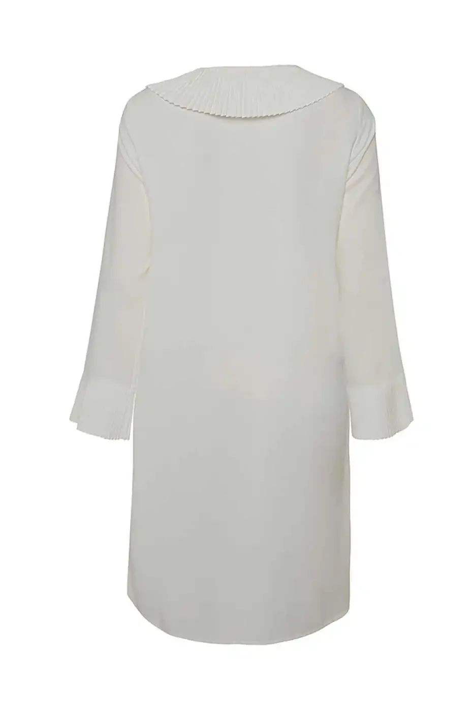 Yaka va manjeti burmalar bilan bezaklangan, o'ziga xos uslubi va chiroyliligi bilan e'tiborni tortadigan tunik, kundalik yoki maxsus kunlar uchun qulay tanlovdir. Nozik burmalar tafsilotlari bilan zamonaviy va ayni paytda ayolona ko'rinishga ega bo'lgan tunik turli uslublarni mukammal birlashtiradi. Yumshoq to'qimalari va qulay kesimi uzoq vaqt davomida foydalanishda qulaylikni ta'minlaydi. Ko'zga ko'ringan ranglar variantlari har bir uslubingiz va didingiz uchun mos keladigan tunik, kiyimingizning ajralmas qismi bo'ladi. O'zgaruvchanlikni taklif qiladigan uslub, klassik va zamonaviy elementlar bilan mukammal mos keladi. Yaka va manjetlardagi burmalar tafsilotlari ko'zga ko'ringan chiroyni taqdim etadi va shu bilan birga harakat erkinligini cheklamasdan uslubli ko'rinishga erishishga imkon beradi. O'ziga xos tafsilotlari bilan diqqatni tortadigan bu tunik har bir kiyim uchun mukammal qo'shimcha hisoblanadi.