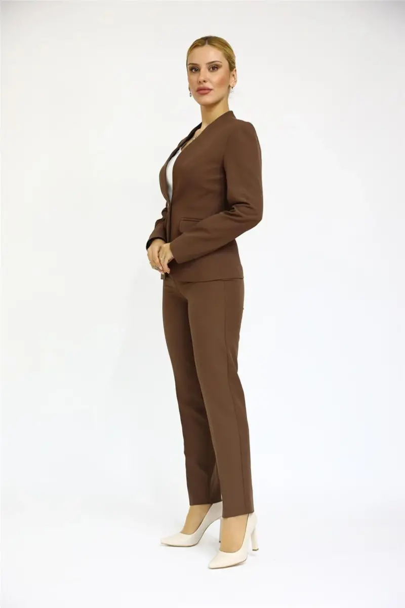 Chiroylilik va qulaylikni birlashtirgan Yoqasiz bitta tugmali kurtka va quvurli shimlar to'plamimiz bilan tanishing! Kashtan va achchiq qahva ranglarining mukammal uyg'unligi bilan yaratilgan ushbu to'plam sizning garderobingizning ajralmas qismiga aylanishga nomzod. ONDER OZSOY kafolati bilan taqdim etilgan ushbu maxsus dizayn kundalik foydalanish va maxsus tadbirlar uchun ideal tanlovdir. Bizning to'plamimiz o'zining zamonaviy va nafis ko'rinishi bilan ajralib tursa, qulay matosi kun bo'yi qulaylikni ta'minlaydi. Yoqasiz kurtka dizayni turli aksessuarlar va bluzkalar bilan osongina birlashtirilishi mumkin, quvurli shimning chiroyli kesimi esa tana chiziqlaringizni mukammal tarzda ochib beradi. Ushbu to'plam nafaqat zamonaviy, balki amaliy variant hamdir. Kurtkaning old qismida joylashgan cho'ntak qopqoqli dekorativ cho'ntaklar dizaynga nafislik qo'shsa, shimning elastik belbog'i va yon fermuari kiyishni osonlashtiradi. 40% paxta, 50% polyester va 10% elastandan tayyorlangan to'quv mato ham chidamlilikni, ham qulaylikni ta'minlaydi. Mato elastikligi harakat erkinligingizni cheklamaydi, paxta tarkibi esa teringizga nafas olish imkonini beradi. Ushbu to'plam har qanday mavsumda osongina ishlatishingiz mumkin bo'lgan ko'p qirrali mahsulotdir. Xoh u baland poshnali poyabzal bilan zamonaviy kombinatsiyani yarating, xoh sport poyabzali bilan yanada qulay ko'rinishga ega bo'ling. Yoqasiz bitta tugmali kurtka va quvurli shimlar to'plami har qanday vaziyatda o'z uslubingizni aks ettirishga imkon beradi. Unutmang, barcha mahsulotlarimiz o'z ishlab chiqarishimizdir va eng yuqori sifat standartlariga muvofiq ishlab chiqariladi. Studio suratga olish paytida ranglar yorug'lik farqi tufayli o'zgarishi mumkin, ammo mahsulotimizning haqiqiy rangi va sifati sizni hayratda qoldiradi. Modelimizdagi 36 o'lchamdagi to'plam mahsulotning sizga qanday mos kelishi haqida tasavvur berishi mumkin. Bo'yi 175 sm, ko'kragi 87 sm, beli 68 sm, soni 96 sm va vazni 56 kg bo'lgan modelimiz ushbu to'plamning naqadar chiroyli va qulay ekanligini ko'rsatadi. Ushbu maxsus to'plamni o'tkazib yubormang, u garderobingizning eng sevimli qismiga aylanishga tayyor!