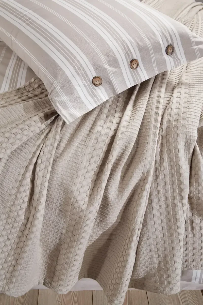 Yakka Kishilik 3 Parça Pike Seti Estivo Bej-Bej bilan yotoqxonangizga issiq va taklif qiluvchi teginish qo'shing. Bej rangining huzur beruvchi tonlari, zamonaviy va zamonsiz dizayni bilan birlashib, yotoqxonangizda sokin va hashamatli muhit yaratadi. Yuqori sifatli %100 paxtadan tayyorlangan bu to'plam, qulay uyqu tajribasini taqdim etadi, shu bilan birga uzoq umr ko'rishni ta'minlaydi. Teringizga muloyimlik bilan teginadigan paxta mato, nafas olish xususiyati tufayli terlashni oldini oladi va tun bo'yi qulay uyqu muhitini taqdim etadi. Estivo Bej-Bej pike seti, nafaqat hashamatli ko'rinishi bilan, balki amaliy qo'llanilishi bilan ham ajralib turadi. Yuqori sifatli paxta to'qimasi tufayli osongina yuvilishi va dazmollanishi mumkin, shuning uchun har doim toza va tartibli ko'rinishni taqdim etadi. To'plam tarkibiga kiradigan pike, choyshab va yostiq jildi, yotoqxonangizdagi rang va naqsh muvozanatini to'ldiradi, sizga ham qulay uyqu tajribasini beradi. Estivo Bej-Bej pike setini xoh o'zingiz uchun oling, xoh yaqinlaringizga sovg'a qiling, har qanday holatda ham mamnunlik kafolatlanadi. Mahsulotimiz, sog'liq uchun zararli hech qanday modda o'z ichiga olmaydi va OEKO-TEX® Standard 100 sertifikatiga ega. Shu sababli, xotirjamlik bilan foydalanishingiz va yaqinlaringizga ishonch bilan sovg'a qilishingiz mumkin. Yakka Kishilik 3 Parça Pike Seti Estivo Bej-Bej bilan yotoqxonangizda ham hashamatni, ham qulaylikni birga his eting. Yumshoq to'qimasi, nafis dizayni va bej rangining iliqligi bilan, bu to'plam yotoqxonangizning ajralmas qismiga aylanadi. Kunning charchoqini o'zingizdan aritib, Estivo Bej-Bej pike setining taqdim etgan qulayligi bilan huzurli bir uyquga g'arq bo'ling. Yuqori sifatli materiali va ehtiyotkorlik bilan ishlanganligi tufayli, uzoq yillar davomida birinchi kundagidek foydalanishingiz mumkin bo'lgan bu to'plam, yotoqxonangizga qadr qo'shadi.
