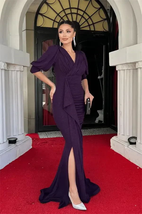 Yaltiroq matodan tikilgan, baliq shaklidagi volan detallari bilan bezatilgan kechki libos bilan maxsus kunlaringizda ko'zni qamashtiring. Ushbu nafis va zamonaviy kechki libos, badimjon binafsha rangi bilan olijanob ko'rinish beradi, baliq shaklidagi kesimi esa tana chiziqlaringizni mukammal tarzda ochib beradi. Yaltiroq matoning jilosi har qadamda sizni yulduzdek porlaydi. Libosning volan detallari dizaynga harakat va zamonaviy havo qo'shib, ayolligingizni ta'kidlaydi. Yelkasidan etagigacha 160 sm uzunlikdagi libos, nafislik va zamonaviylikni birgalikda taqdim etadi. Orqa qismidagi fermuar tufayli uni kiyish va yechish oson. Etagidagi gren detal libosga yoqimli teginish qo'shadi va uni jonlantiradi. To'ylardan nishonlargacha, maxsus kechalardan kokteyllargacha har qanday tadbirda bemalol kiyishingiz mumkin bo'lgan ushbu kechki libos, shkafingizning ajralmas qismiga aylanadi. O'zingizni maxsus va go'zal his qilishni istagan har bir daqiqada, yaltiroq matodan tikilgan, baliq shaklidagi volan detallari bilan bezatilgan kechki libos sizga hamroh bo'ladi. Zamonaviyligingiz bilan barcha e'tiborni o'zingizga tortishga tayyor bo'ling. Modelning ustidagi S/36 o'lchami, libosning har xil o'lcham variantlari bilan har qanday tana tuzilishiga moslasha olishini ko'rsatadi. Badimjon binafsha rangining sehrli toni teringiz rangini ochib beradi, yaltiroq matoning jilosi bilan esa siz kechaning eng zamonaviy ayoli bo'lasiz. Ushbu kechki libos bilan siz nafaqat kiyim, balki bir xil pozitsiyani namoyish qilasiz. O'zingizni maxsus his qilish va unutilmas xotiralar to'plash uchun ushbu noyob dizaynni qo'ldan boy bermang. Volan detallari libosga dinamik ko'rinish beradi, baliq shaklidagi kesimi esa tanangizning eng go'zal egri chiziqlarini ta'kidlaydi. Yaltiroq matoning to'qimasi yorug'likni aks ettirib, sizni xuddi ertakdan chiqib kelgandek ko'rsatadi. Har bir detalida nafislik va e'tibor sezilib turgan ushbu kechki libos, maxsus kunlaringizda sizga benuqson zamonaviylikni taqdim etadi.
