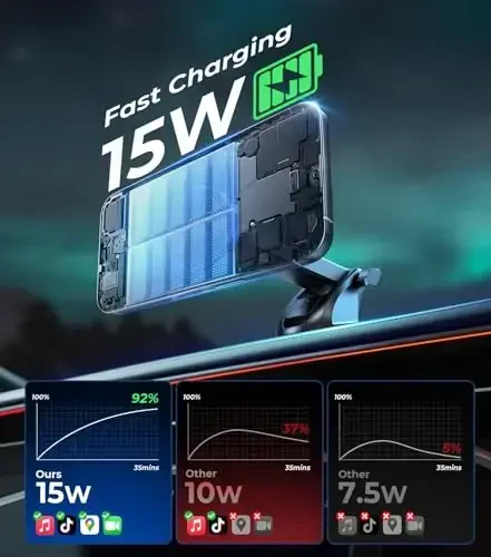 Tez zaryadlash uchun 18 Vt QC adapteri kerak (alohida sotiladi). Mahsulot bilan birga batafsil o'rnatish videolar, FAQ, 180 kunlik kafolat, umrbod yordam va shaxsiy yordam taklif etiladi. Avtomobil zaryadlovchi adapteri paketga kiritilmagan. So'rg'ichning yopishqoqligini tiklash uchun suv bilan yuvib tashlang.
