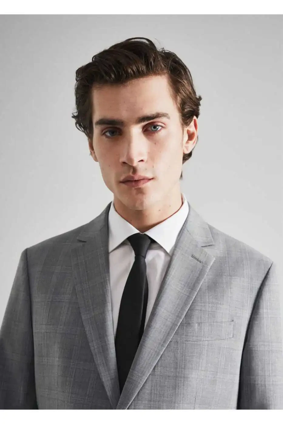 Professional ko'rinishingizni zamonaviy va o'ziga xos Slim Fit Yundan tikilgan kalampir kostyum bilan to'ldiring.41% jun, 40% qayta ishlangan poliester, 14% poliester va 5% elastandan tayyorlangan bu hashamatli matodan tikilgan kostyum ham nafis, ham chidamlidir. Qayta ishlangan poliester ekologik toza to'g'ri keladi, shuningdek uvilmasga chidamlilik kabi o'ziga xos xususiyatlarga ega.Slim Fit uslubi sizning tanangizga oqlanganidek mos keladi va zamonaviy siluet yaratadi. Glen kalampir naqshi klassik uslub qo'shadi va sizning kostyumingizni ajratib turadi.Blazer pidjagi burmali yoqa, tugmali uzun qo'llar va ko'krak qismida lenta tikilgan cho'ntagiga ega bo'lib, nafis ko'rinishga ega. Ikki qopqoqli cho'ntak va ikkita ichki cho'ntak sizning zaruriy buyumlaringiz uchun yetarli joy beradi.Shtanlar qulay o'tirish va erkin harakat qilish uchun to'g'ri uslubda tikilgan. Yon tikuv uzunligi 49,7 sm, orqa uzunligi esa 79,1 sm.Bu kostyum sizning tana haroratingizni tartibga soladigan termo-regulyatsiya xususiyatiga ega bo'lib, butun kun davomida sizga qulaylik yaratadi. Ikki tomonlama cho'ziladigan mato o'zining egiluvchan tuzilishi tufayli mukammal mos kelishini va qulaylikni ta'minlaydi.Bizning Slim Fit kostyumimizni sviter, futbolka yoki maxsus kunlar uchun klassik ko'ylak va galstuk bilan birgalikda kiyib, ham rasmiy, ham qulay uslubga erishishingiz mumkin.Optimal parvarishlash uchun quyidagi ko'rsatmalarga amal qiling:* Yuvmang* Oqartirgichlardan foydalanmang* Eng ko'pi 110°C haroratda dazmollang* Perxloreten bilan quruq tozalang* Kir yuvish mashinasida quritish mumkin emas