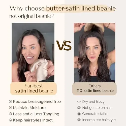 Шапка-бини YANIBEST для женщин с сатиновой подкладкой – прекрасный вариант как для женщин, так и для мужчин в зимние месяцы. Внешний слой из 100% мягкой акриловой пряжи и подкладка из золотистого полиэстерного сатина обеспечивают невероятную мягкость и комфорт для вашей кожи. Эту шапку вы точно не захотите снимать! Она подходит для многих повседневных ситуаций, и доступна в различных цветах для женщин и мужчин. Вы можете выбрать один из ваших любимых цветов, который будет сочетаться с вашей одеждой. Сатиновая подкладка обеспечивает превосходную защиту волос от повреждений, вызванных ветром, солнцем и холодом. Сатин идеально подходит для защиты волос, так как он поглощает меньше влаги и вызывает меньше трения, чем другие материалы (такие как шерсть и хлопок). Эти шапки не только помогают минимизировать спутывание и ломкость волос, но и достаточно эластичны, чтобы комфортно вмещать даже объемные прически. Это идеальный аксессуар на любой сезон: зимой он согреет вас, а весной и осенью добавит стильный акцент. Благодаря широкому спектру применения, вы можете с комфортом носить ее в повседневной жизни, а также использовать для различных активных видов отдыха на открытом воздухе, таких как катание на лыжах, сноуборде, санках, коньках. Она также станет прекрасным подарком на день рождения, Хэллоуин, День благодарения, Рождество, Новый год и другие праздники. Высококачественные материалы и стильный дизайн шапки-бини YANIBEST для женщин с сатиновой подкладкой делают ее идеальным аксессуаром, который подчеркнет ваш стиль и согреет вас. Надевая эту шапку, вы будете чувствовать себя одновременно тепло и стильно!