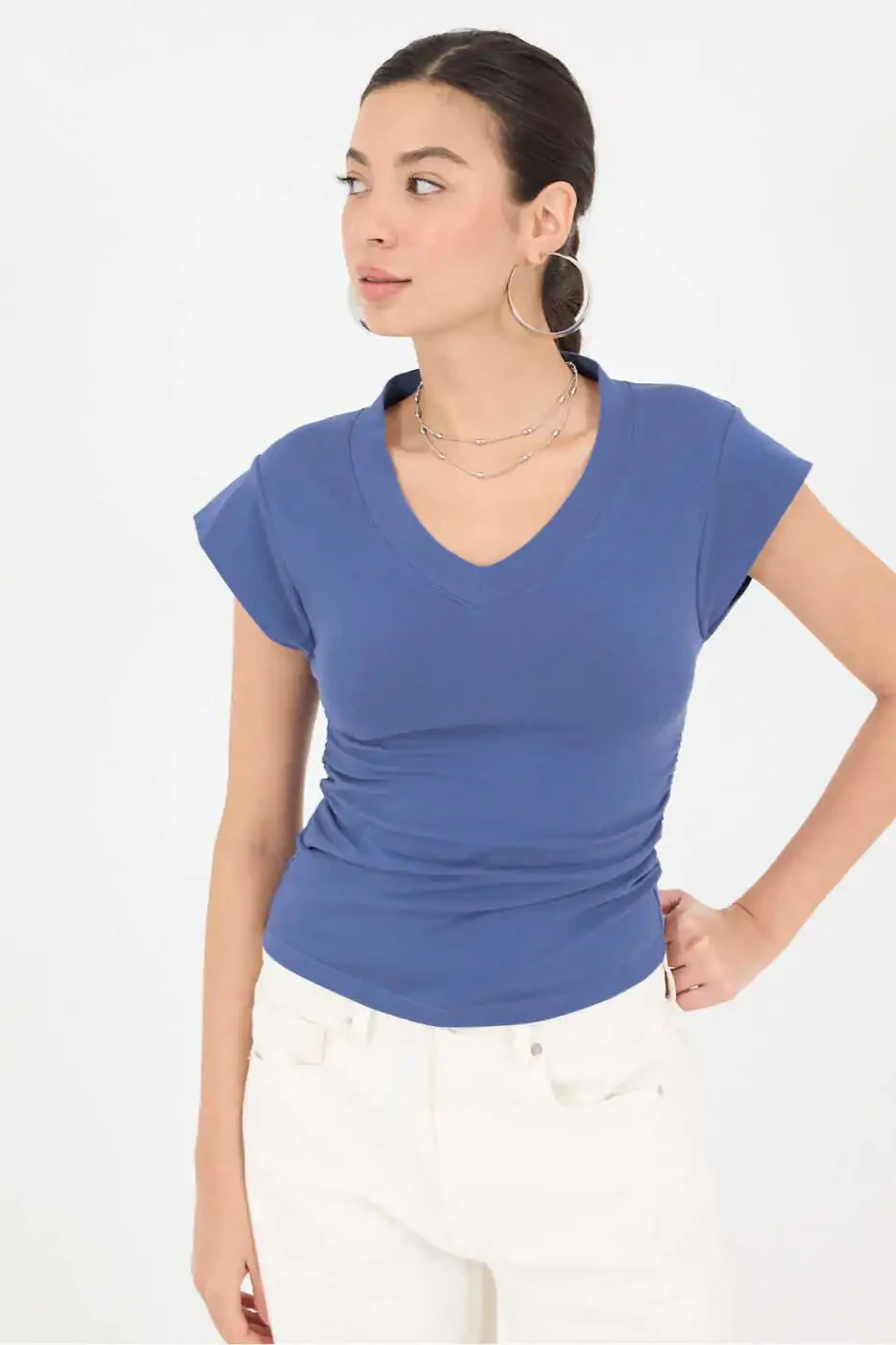 Освежите свой гардероб с помощью футболки с V-образным вырезом и сборками по бокам Addax P1566-S1. Эта стильная и удобная блузка станет отличным выбором как для повседневной носки, так и для особых случаев. V-образный вырез и короткие рукава создают женственный образ, а сборки по бокам придают современный и динамичный вид. Благодаря базовой модели блузки, она станет идеальным базовым элементом для создания различных комбинаций. Независимо от того, хотите ли вы создать спортивный шик с джинсами или более элегантный образ с юбкой, эта блузка подойдет к любому стилю. Эта футболка, произведенная с качеством Addax, прослужит долго и станет вашим любимым предметом одежды. Этот продукт может быть предложен для продажи несколькими продавцами, что дает вам различные варианты цен и доставки. Вы можете выбрать наиболее подходящий вариант, изучив рейтинги продавцов и детали продукта. Воспользуйтесь преимуществами, предлагаемыми Trendyol, закажите эту стильную блузку прямо сейчас и отразите свой стиль. Помните, вы можете заказать не более 10 штук этого товара. Для получения дополнительной информации об условиях корпоративных заказов Trendyol ознакомьтесь с ними. Наслаждайтесь стилем и комфортом с футболкой с V-образным вырезом и сборками по бокам Addax P1566-S1.