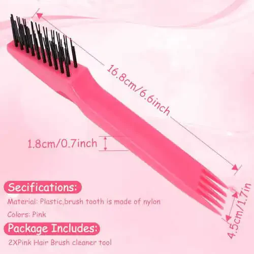 The Yaomiao Hair Brush Cleaner Tool 2-in-1 offers a stylish and practical solution with its pink color. Its durable structure allows you to easily remove hair, dirt, and dust from your hair brushes. Suitable for use at home or in professional salons, this cleaning tool will become an indispensable part of your hair care routine. This set, which includes two identical pink hair brush cleaners, is both budget-friendly and convenient. Thanks to its ergonomic design with dimensions of 16.8 x 4.5 x 1.8 cm (L x W x H), it is easy to grip and use. The comb teeth are 1.8 cm long, and thanks to the durable nylon bristles at different levels, it effortlessly cleans even the most stubborn hairs. The Yaomiao Hair Brush Cleaner Tool not only cleans your hair brushes but is also ideal for cleaning dust and dirt on various surfaces such as keyboards and furniture gaps. Its double-sided design combines two different cleaning functions, making cleaning more practical. The high-toughness cleaning claws easily remove hair stuck between the brush bristles, while the high-hardness bristles quickly clean oil and dirt on the brush. Hair loss is a normal part of life, and these cleaning tools are an important element of hair care. It is a thoughtful option that you can use for yourself or give as a gift to your family, loved ones, or friends. Thanks to this handy tool, your hair brushes will always be clean and hygienic, making your hair care experience more enjoyable. Extend the life of your hair brushes and stay groomed with the Yaomiao Hair Brush Cleaner Tool.