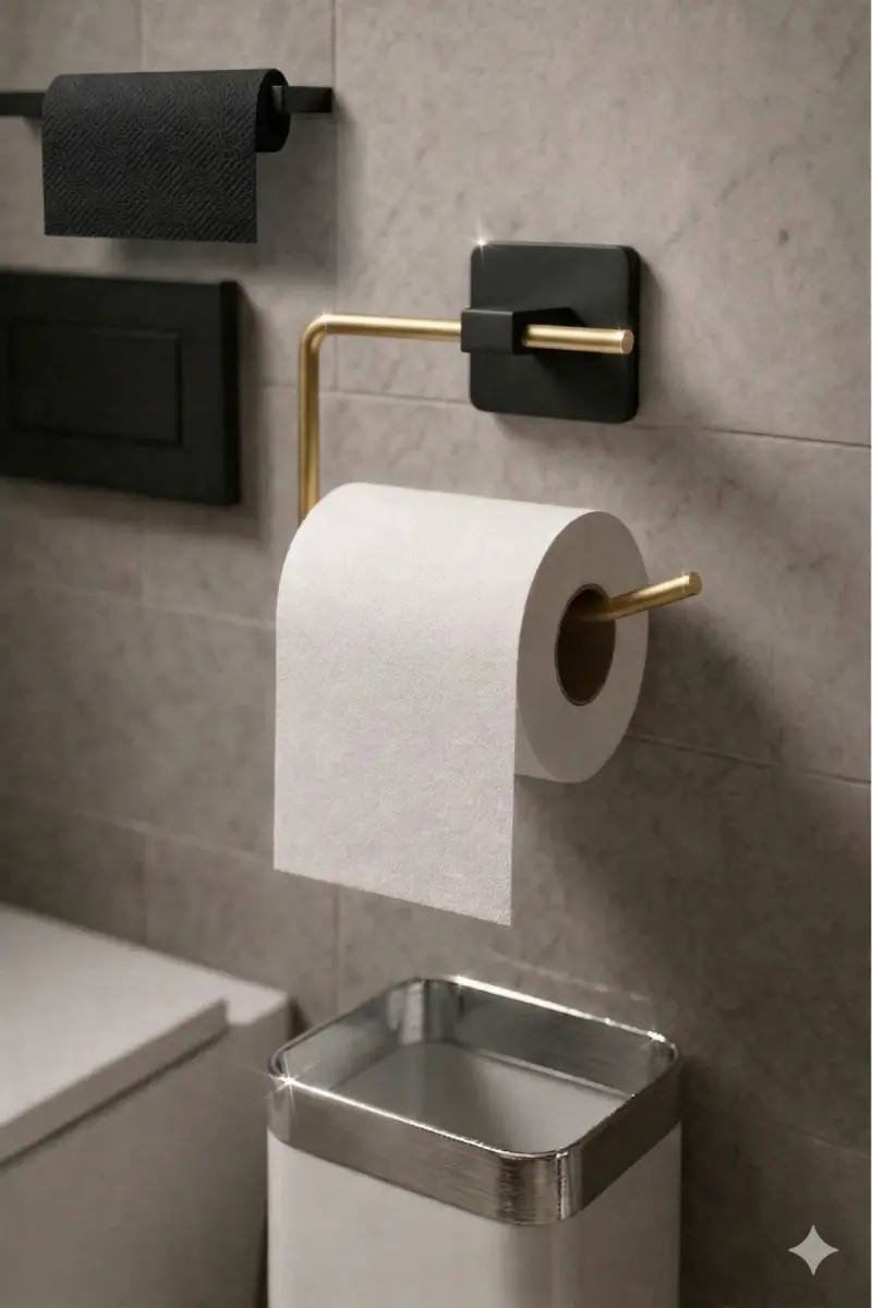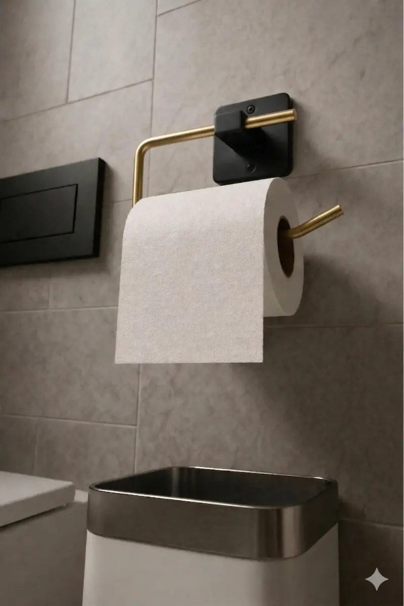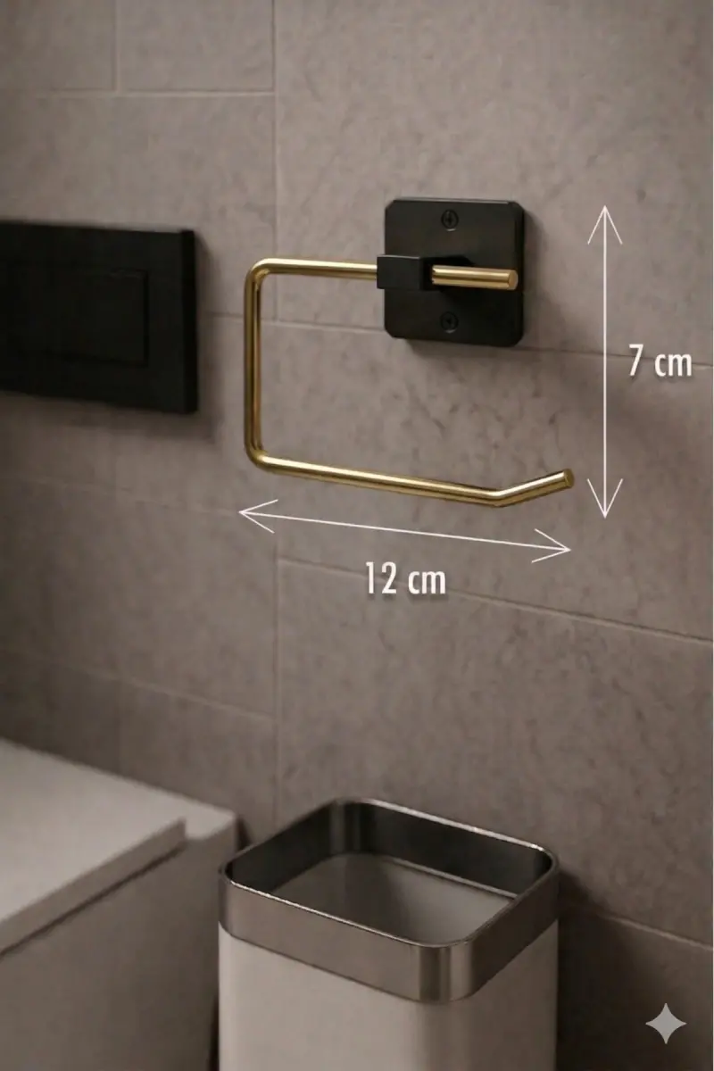 Yapışkanlı Kare Açık Tuvalet Kağıtlığı Wc Kağıtlık Tuvalet Kağıdı Askısı Altın Siyah Ks-001-6997