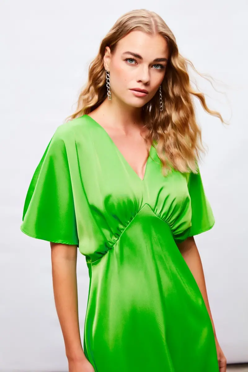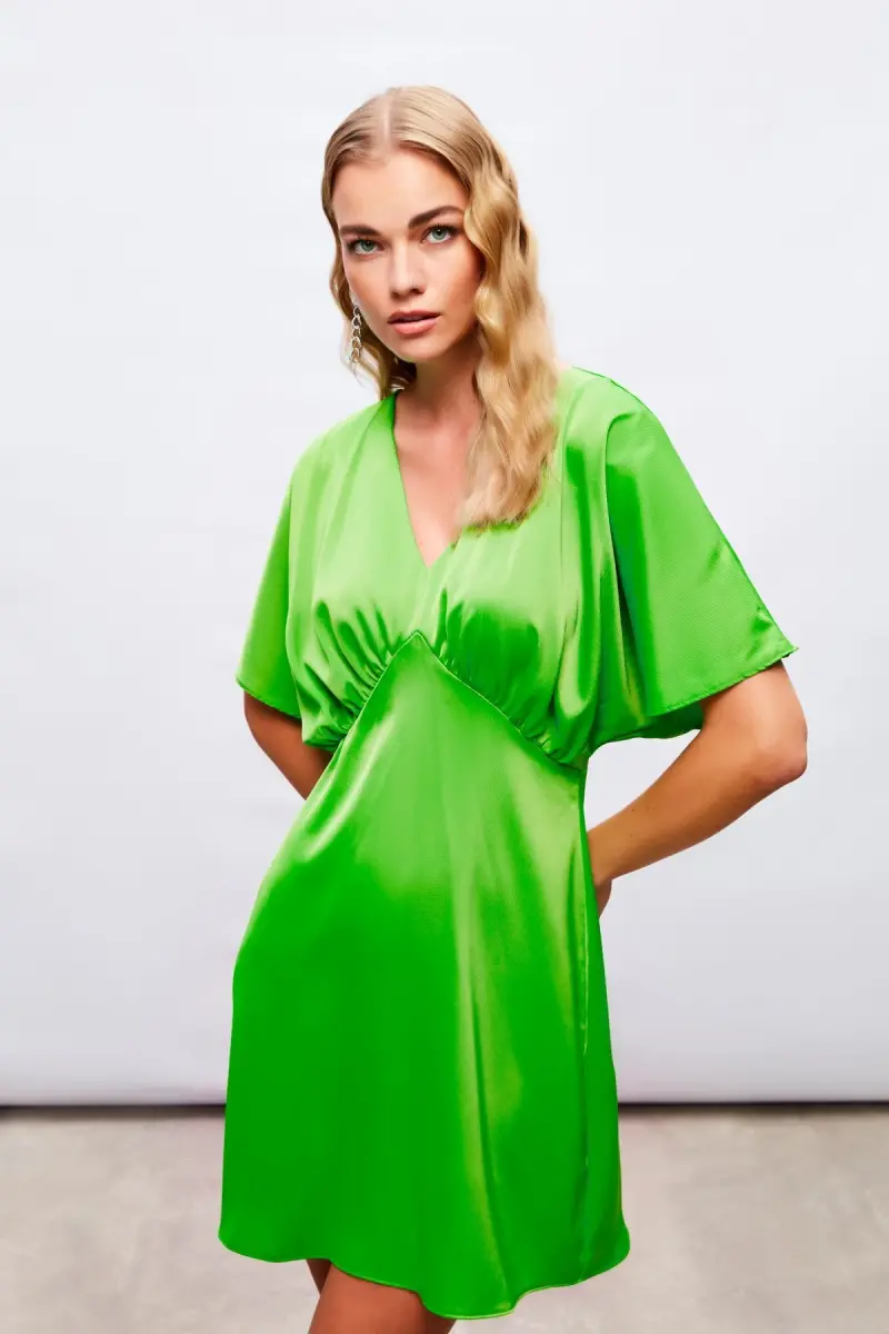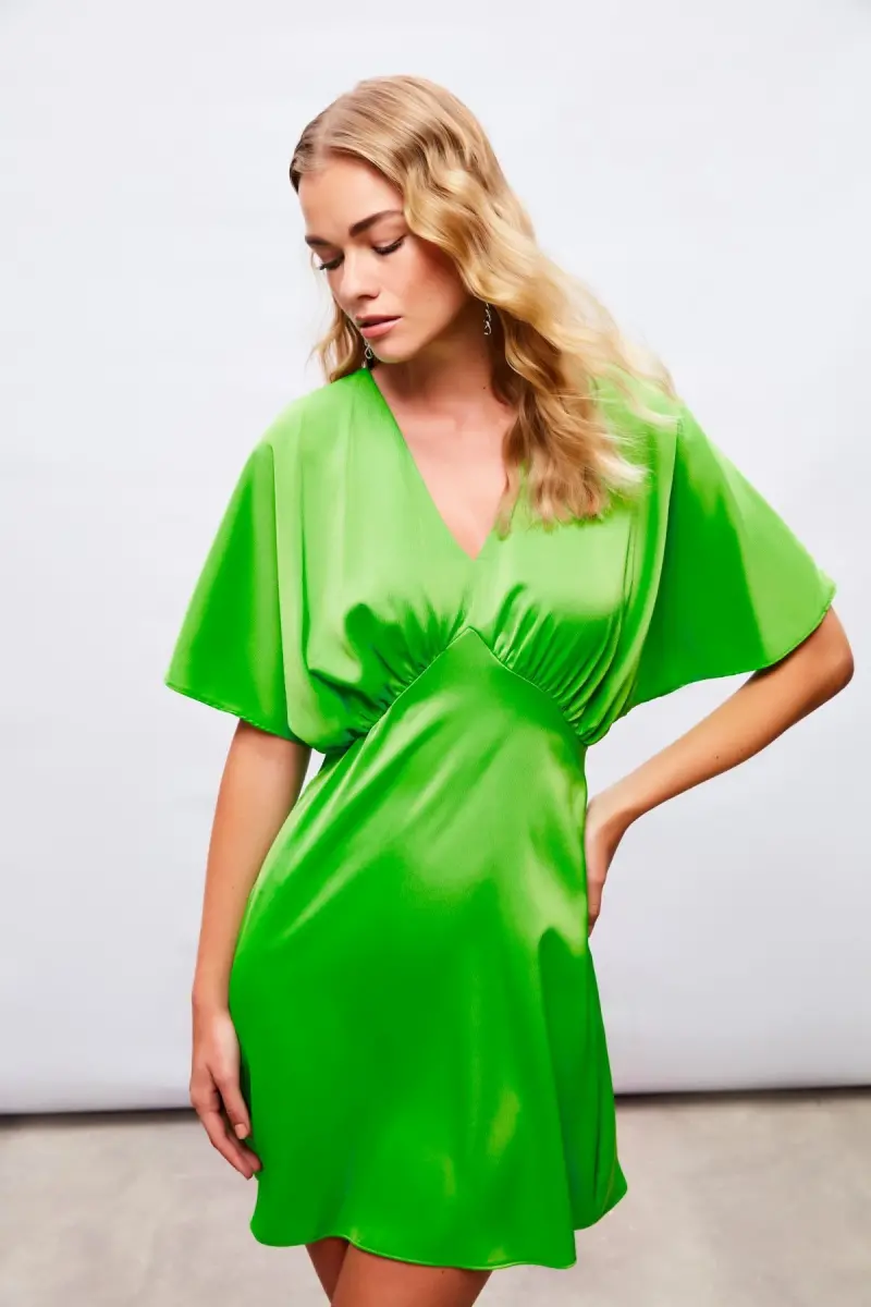 Yarasa Kol Mini Elbise - Açık Yeşil-AÇIK YEŞİL