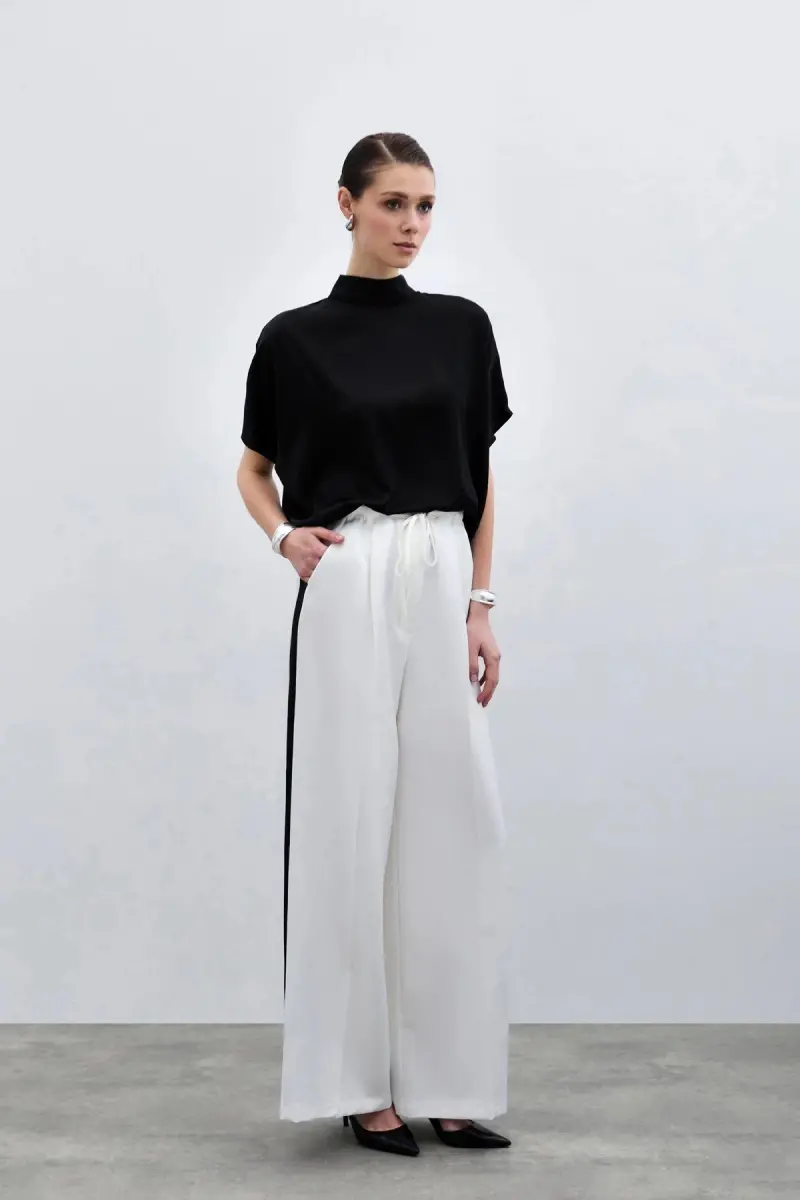 Batwing Sleeve Oversized Blouse - Plain Black is a candidate to be an indispensable part of your wardrobe! This stylish and comfortable blouse is made of high-quality viscose fabric, offering a soft touch to your skin and ensuring a comfortable wearing experience all day long. Thanks to its light and comfortable structure, you will feel like you are not wearing anything, which makes it a perfect option for both daily use and special occasions. The batwing sleeve cut helps you create a stylish silhouette without restricting your freedom of movement, while its loose and modern look will attract attention. The plain black color can be easily combined with all kinds of bottoms and accessories, allowing you to create different styles. Whether you want to achieve a casual look with jeans or create a more stylish combination with a skirt and heels, this blouse will always complete your style. Its easy-to-iron feature saves you time and helps you look well-groomed at all times. This blouse, which has a fabric structure suitable for long-lasting use, will continue to be your favorite piece in your wardrobe for many years, provided that the washing instructions are followed. This blouse, which you can easily use in your daily life and at special events with its stylish and elegant design, does not irritate your skin with its skin-friendly fabric content and is also suitable for sensitive skin. This blouse, produced in Turkey, is manufactured in accordance with high-quality standards and offers you both elegance and comfort. You can give a new breath to your style by ordering this blouse immediately, which is suitable for every body type thanks to its different size options. This blouse, which must be in your wardrobe, is an ideal choice for women who want to be both stylish and comfortable. Make your style speak in every environment with the Batwing Sleeve Oversized Blouse - Plain Black!