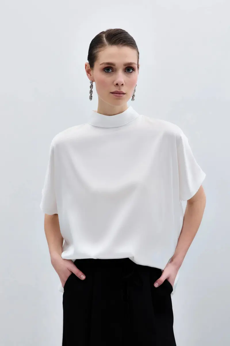 Yarasa Kol Salaş Bluz, gün boyu konforunuzu düşünen, hafif ve nefes alabilen kumaşı sayesinde cildinize nazikçe dokunur. Salaş kesimi, vücudunuzu sarmaz ve size özgür bir his verir. Bu bluz, ister günlük kullanımda ister özel bir davette, her zaman stilinizi yansıtmanızı sağlar. Ekru rengi, her türlü kombinasyona uyum sağlayarak gardırobunuzdaki diğer parçalarla kolayca eşleştirilebilir. Jeanlerle spor bir şıklık yakalayabilir, eteklerle daha feminen bir görünüm elde edebilirsiniz. Aksesuarlarınızla da farklı tarzlar yaratmanıza olanak tanır. Yarasa kol detayı, bluzun modern ve özgün bir hava kazanmasını sağlar. Bu detay, omuzlarınızın ve kollarınızın zarif bir şekilde görünmesini sağlarken hareket özgürlüğünüzü de kısıtlamaz. Gerek iş hayatında gerekse sosyal aktivitelerinizde şıklığınızdan ödün vermeden rahatlığınızın keyfini çıkarabilirsiniz. Bluzun kumaşı, uzun ömürlü kullanım için özel olarak seçilmiştir. Yıkama talimatlarına uyduğunuz takdirde, rengini ve formunu uzun süre korur. Kırışmaya dayanıklı yapısı sayesinde ütü ihtiyacını en aza indirir, böylece size zaman kazandırır. Yarasa Kol Salaş Bluz, sadece bir giysi değil, aynı zamanda bir yaşam tarzıdır. Kendinizi iyi hissetmenizi ve özgüveninizi artırmanızı sağlar. Her detayında kalite ve özenin hissedildiği bu bluz, gardırobunuzun en değerli parçalarından biri olacak. Ekru renginin asaleti ve yarasa kol kesiminin modernliği ile her zaman şık ve tarz sahibi görüneceksiniz. Bu bluz ile günün her anında kendinizi özel hissedin. İster evde rahat bir gün geçirin, ister arkadaşlarınızla buluşun, ister özel bir etkinliğe katılın, Yarasa Kol Salaş Bluz size her zaman eşlik edecektir. Tarzınızı yansıtmak ve şıklığınızı ön plana çıkarmak için bu bluz tam size göre! Her kombininize kolayca uyum sağlayacak, gardırobunuzun kurtarıcısı olacak. Unutmayın, şıklık ve rahatlık bir arada olabilir. Yarasa Kol Salaş Bluz ile bu mümkün!