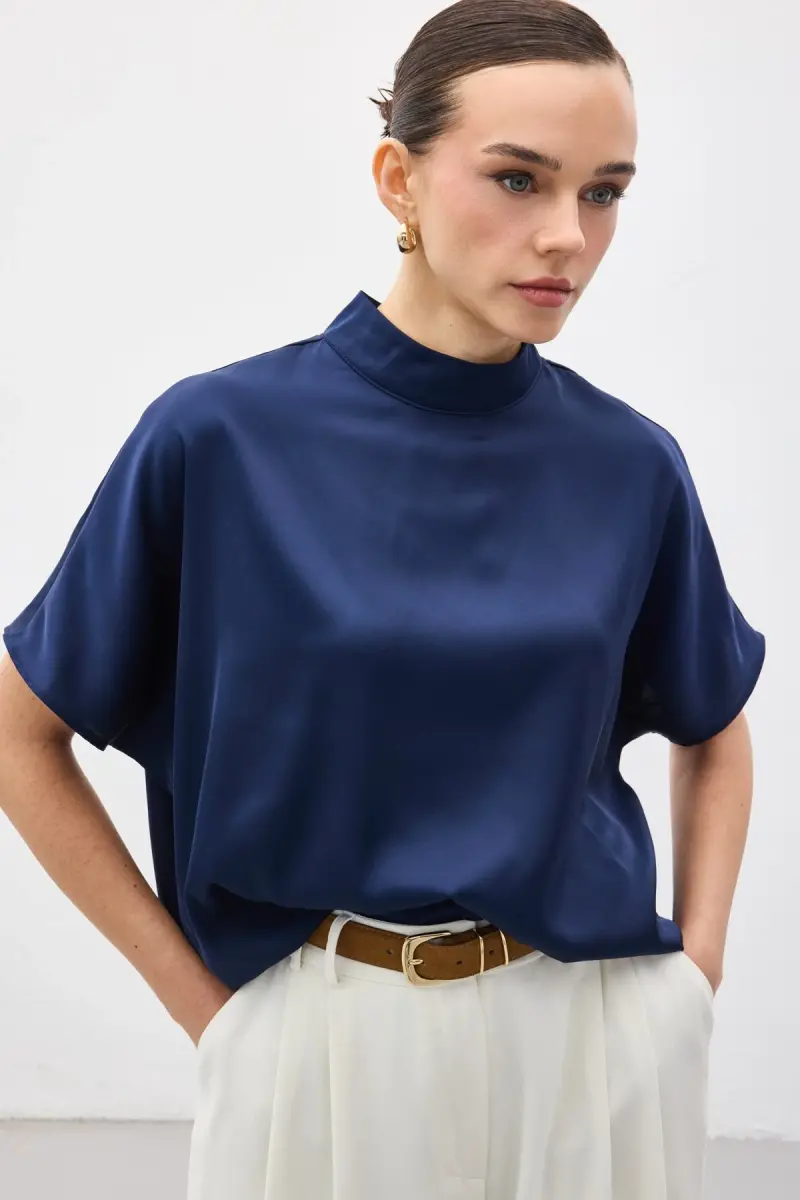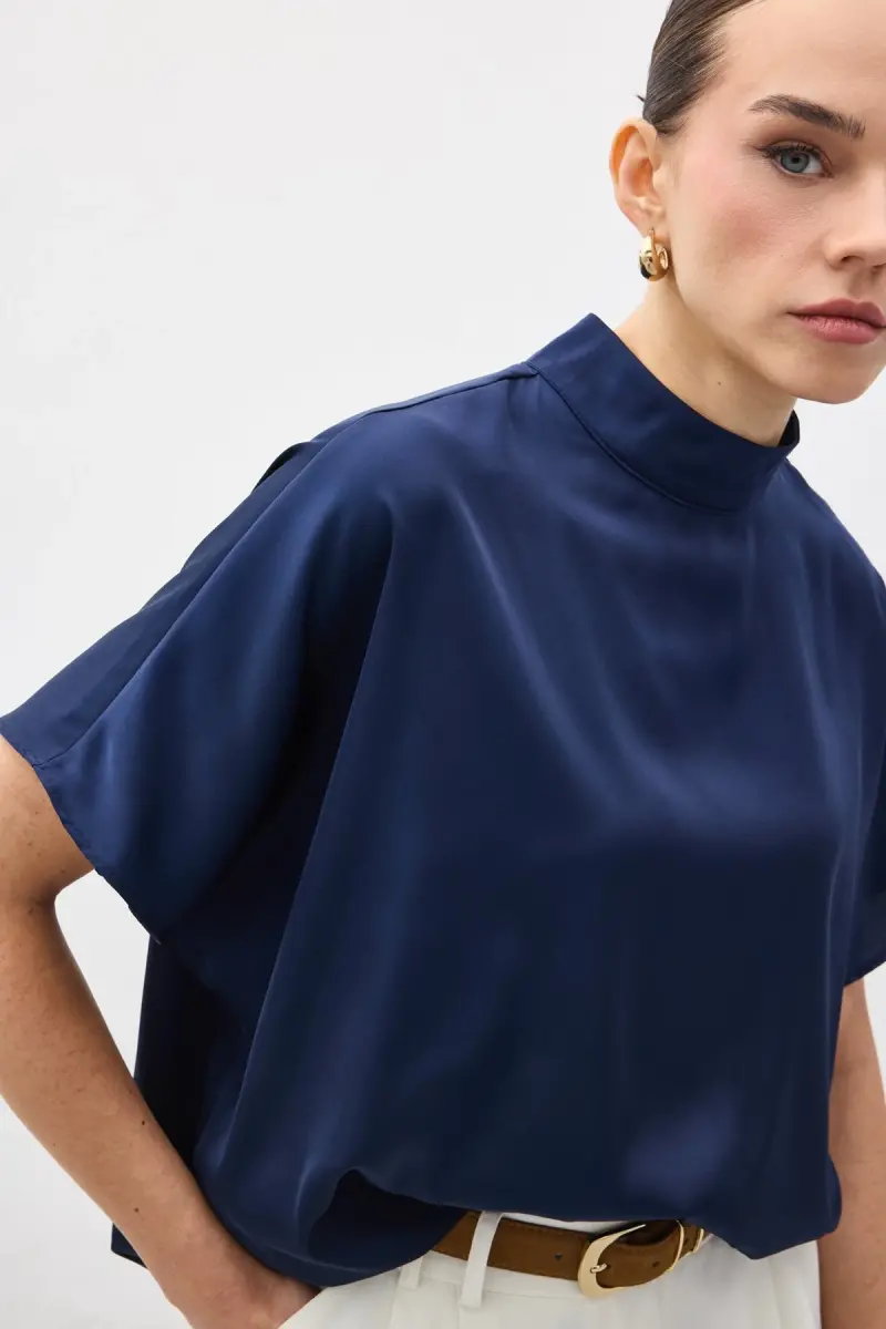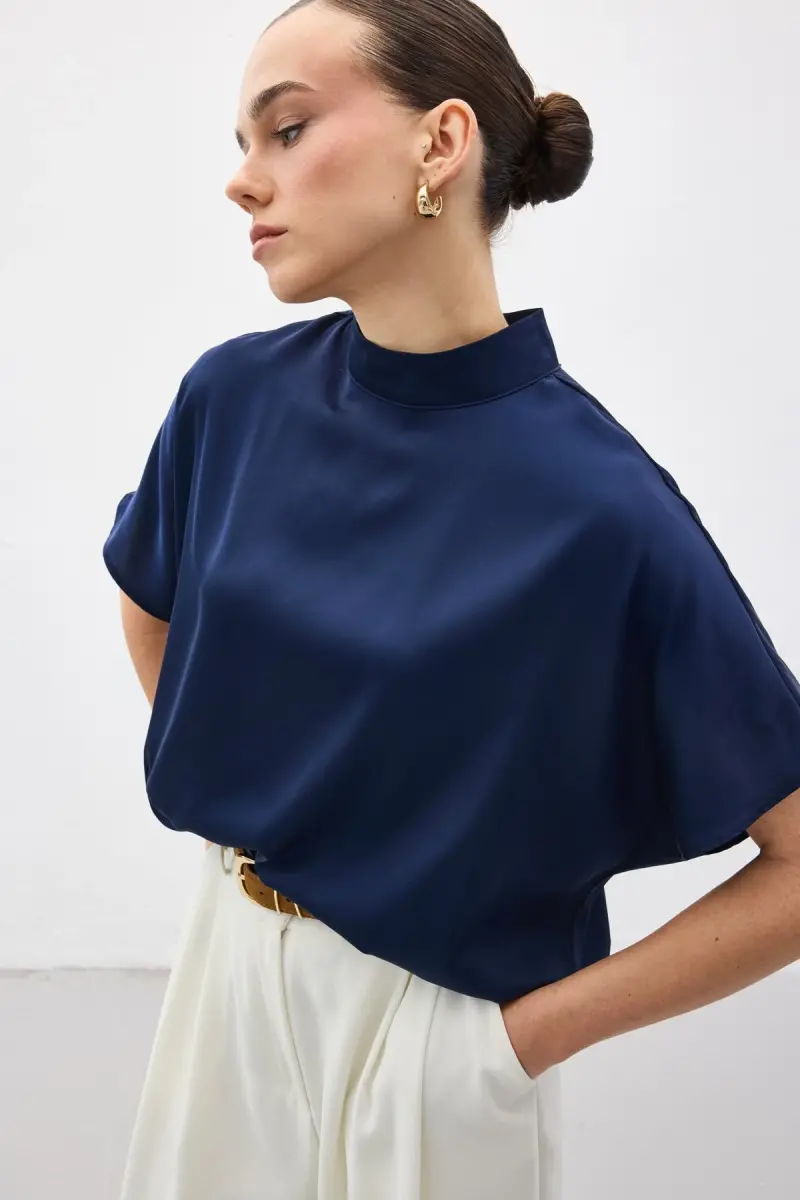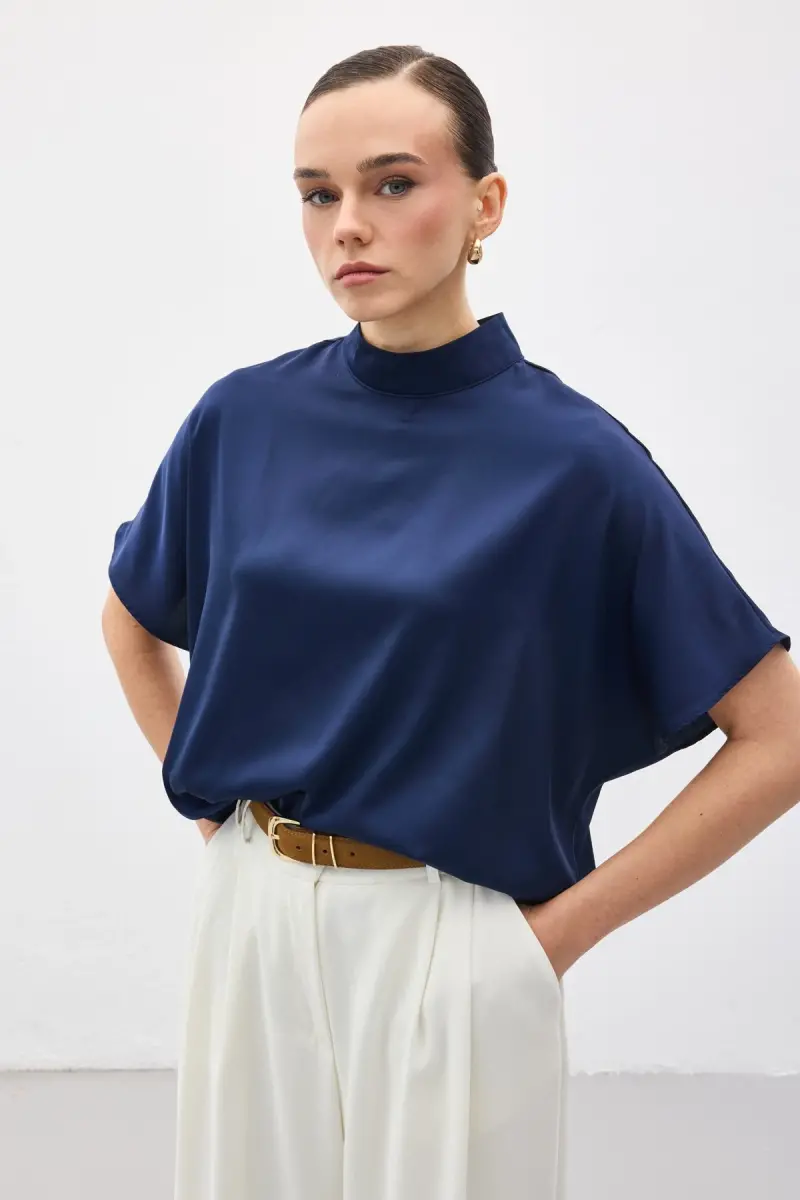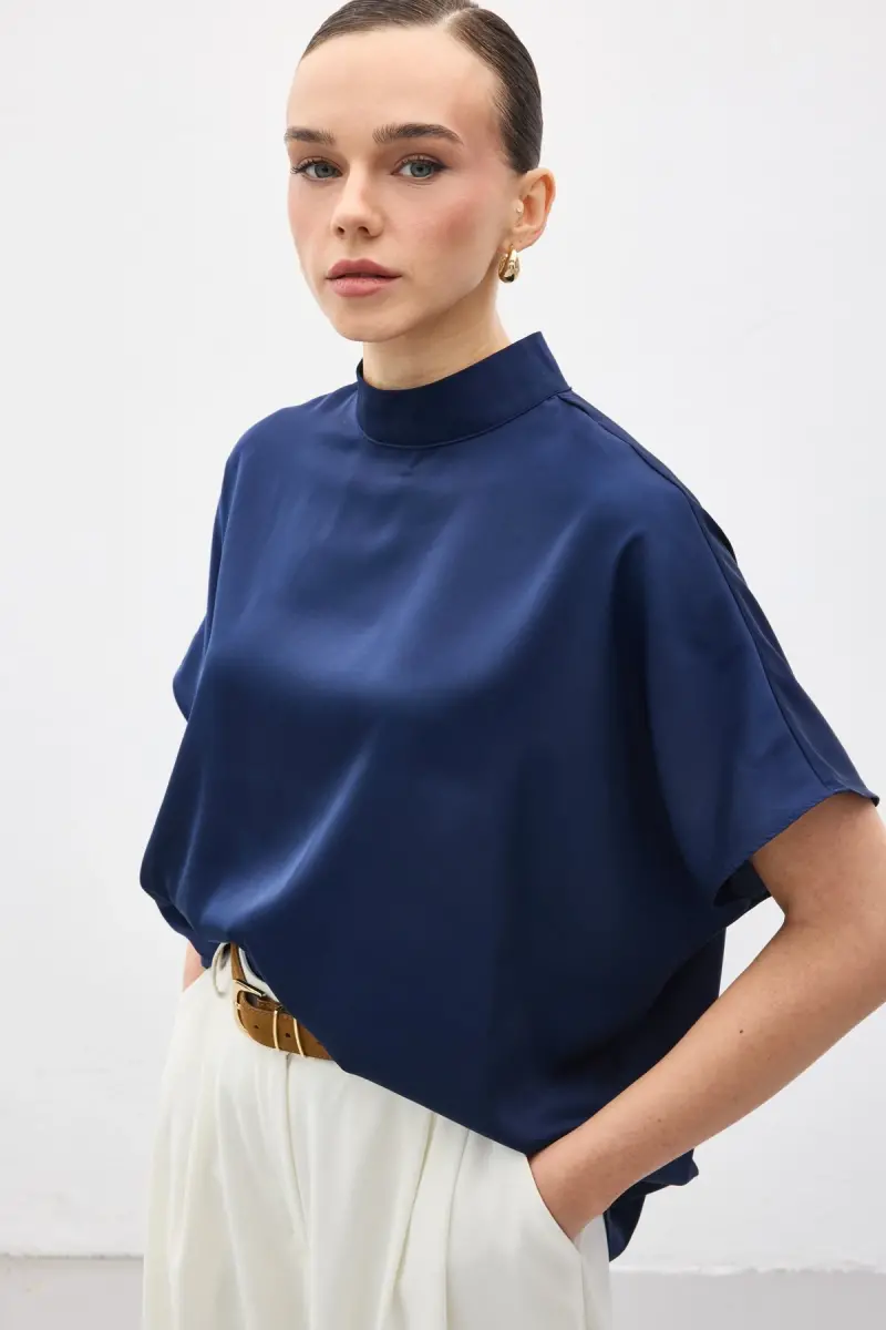 Yarasa Kol Salaş Bluz - Lacivert-Lacivert