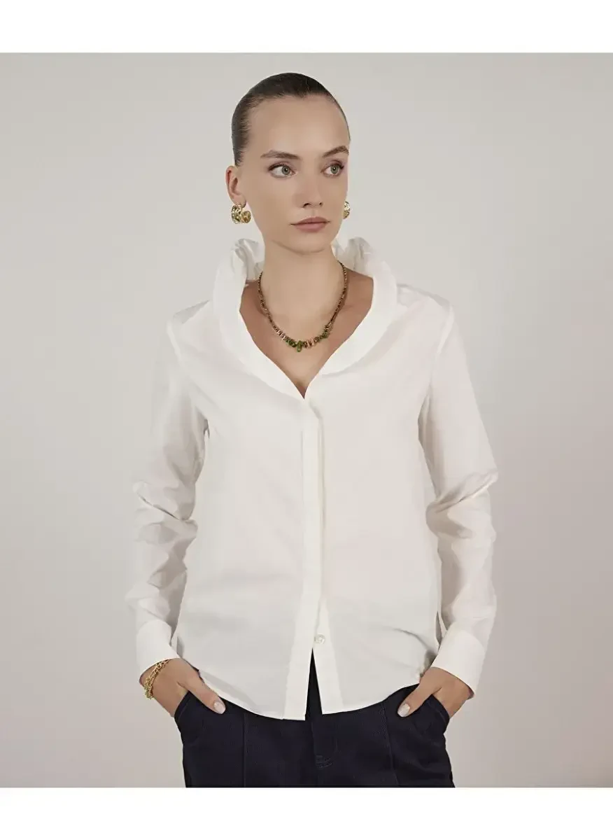 Yargıcı Kırık Beyaz Kadın Gömlek | Klasik Yaka, Şık Tasarım