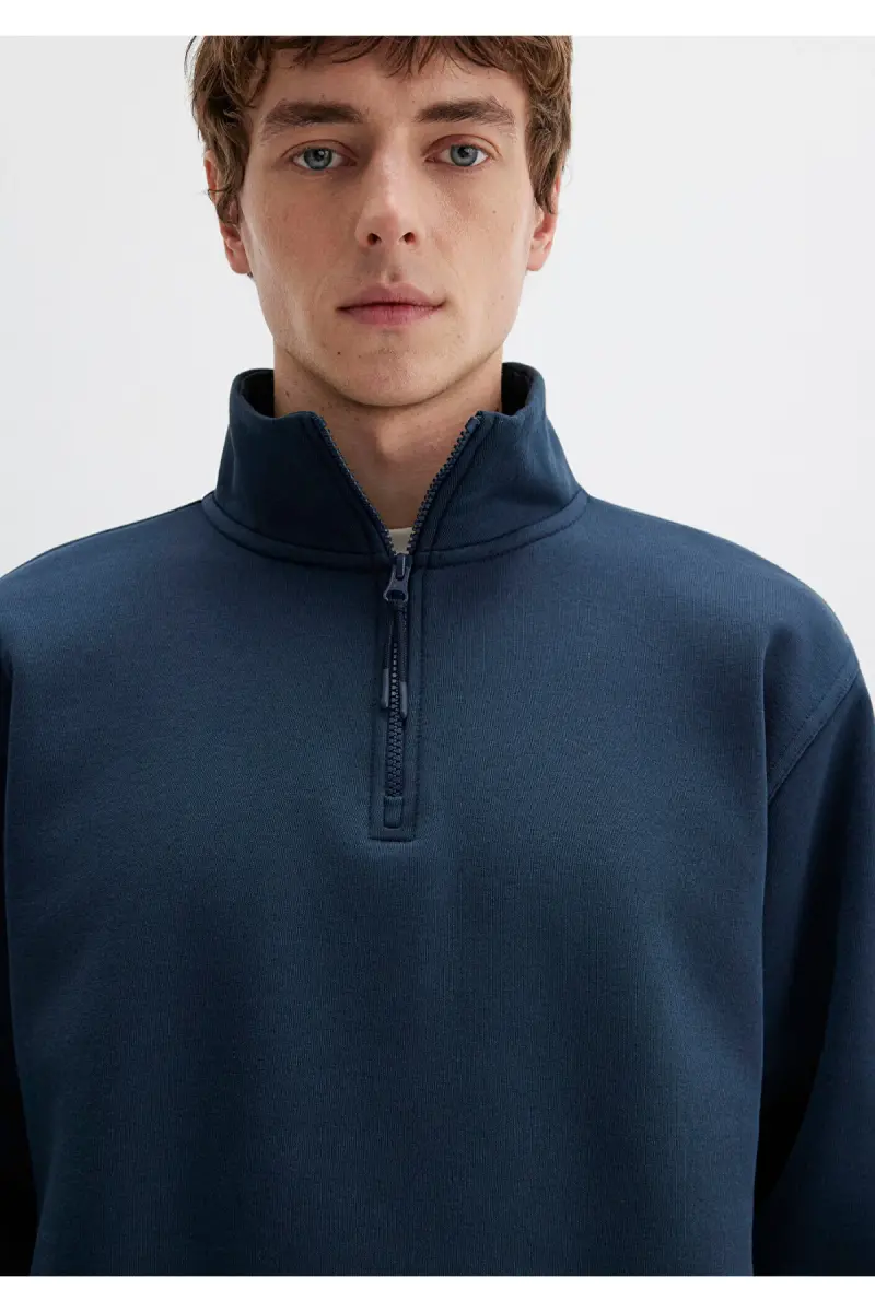 Yarı Fermuarlı Lacivert Basic Sweatshirt 0S10278-70490-Lacivert