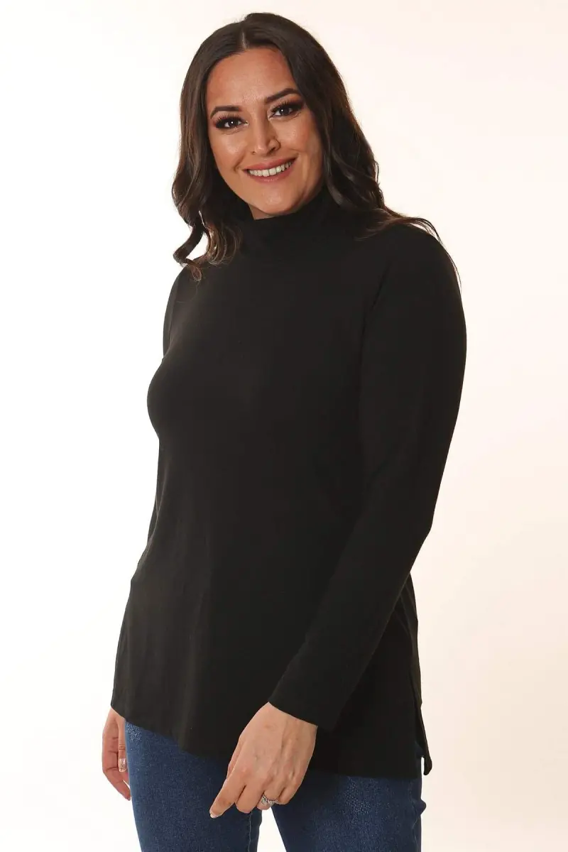 Yarım Balıkçı Siyah Triko Ürün Özellikleri: Soğuk havalarda koruyucu balıkçı yaka Rahat kalıbı ile sade bir görünüm Uzun kol Kalça hizası boy Ürün Açıklaması: Yaşam alanının demirbaşı haline gelen rahat kumaşlar, modern detaylarla ve sonbahara hafif bir geçiş sağlayacak olan renklerle home office algısını şekillendiriyor. Evde de, ofiste de özgür stiller, özgür kadınlar… Renk: Siyah Malzeme: %67 Poliester - %29 Viskoz - %4 Elastan Manken Ölçüleri: Omuz: 47 cm. - Göğüs: 97 cm. - Basen: 105cm - Bel: 80 cm. - Boy: 1,79 cm. Ürün boyu 70 cm. 'dir. Model Bedeni: 44