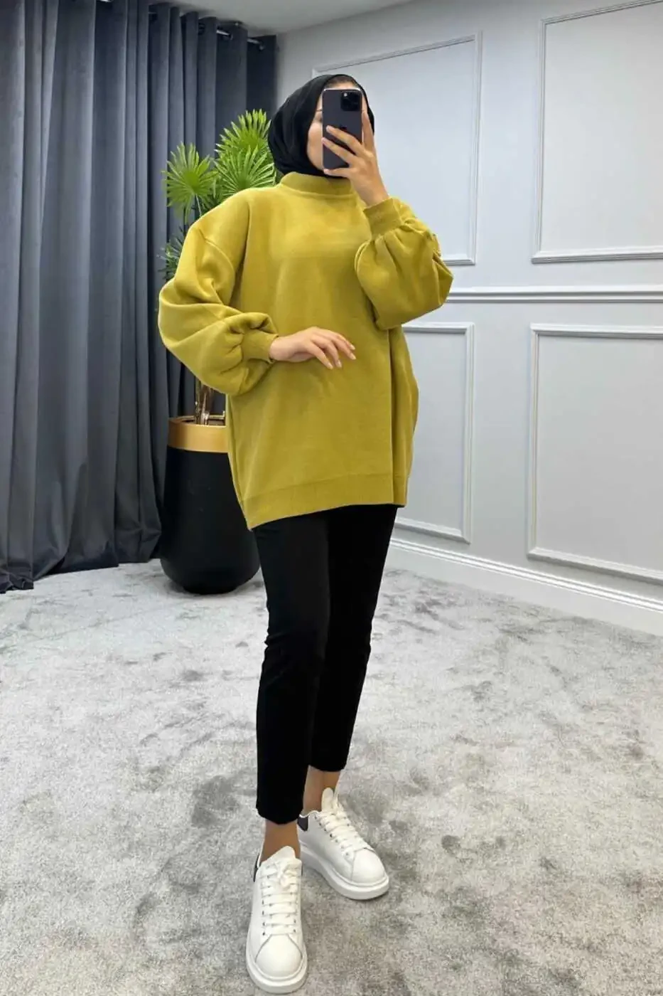 Combining style and comfort, the Half-Turtleneck Knit Sweater will become an indispensable part of your wardrobe. Made with soft and high-quality knit, this sweater provides a comfortable experience throughout the day. This sweater, which will add elegance to any combination with its olive green color, can be easily preferred both in everyday life and on special occasions.