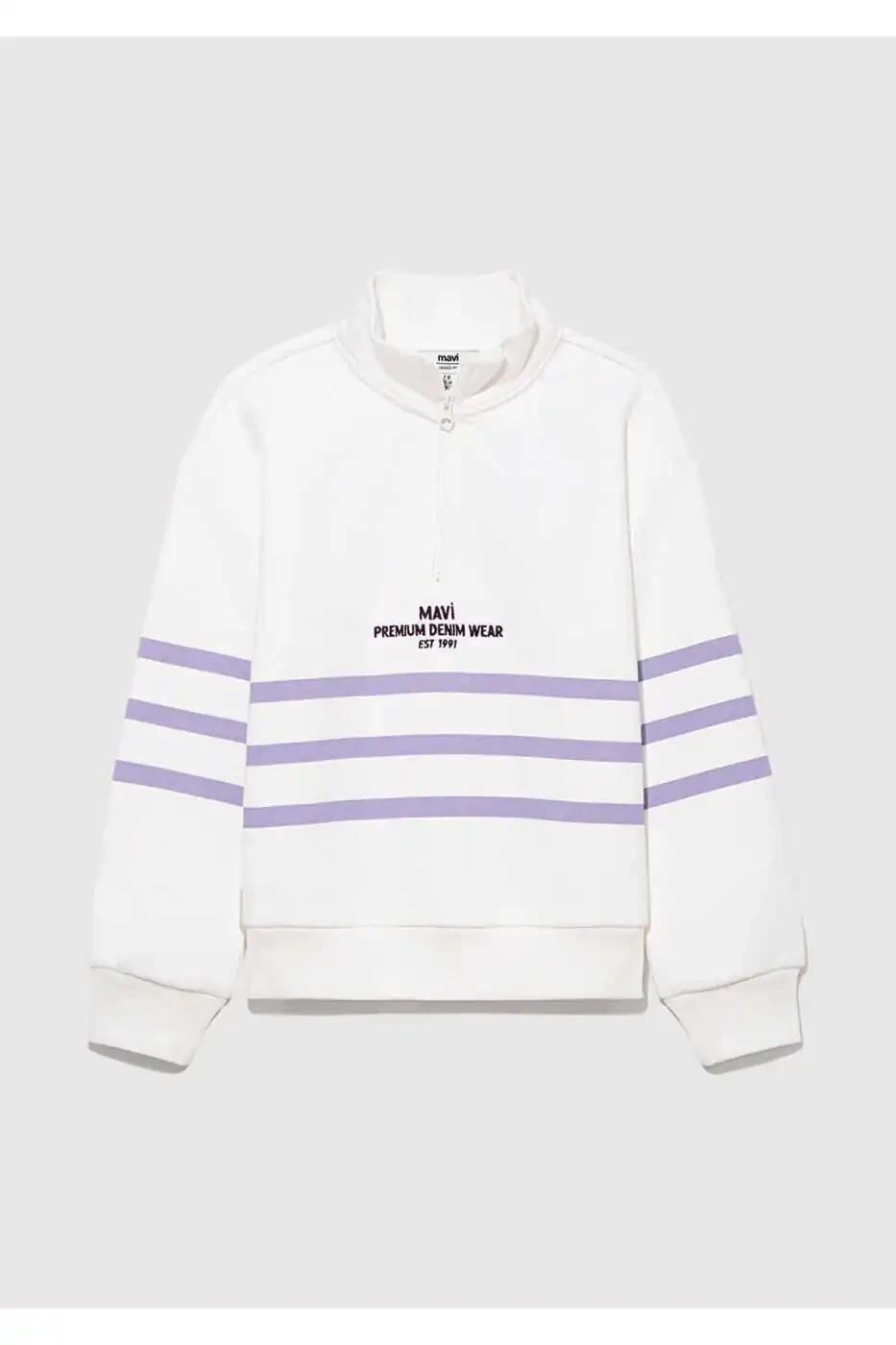 **Mavi 7S10065-70057 Yarim fermuarlı oq-oq chiziqli oq sweatshirt**