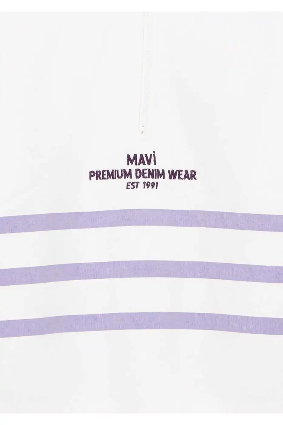 Mavi 7S10065-70057 Yarim fermuarlı oq-oq chiziqli oq sweatshirt | 63% paxta | Keng qirqim