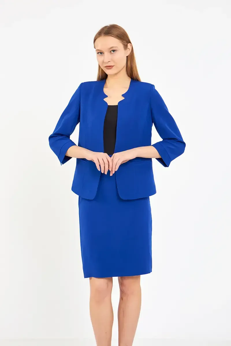 Yarim Kol Jaket Etek Takim - Saks Movisi | Chiroyli va nafis kombinatsiya