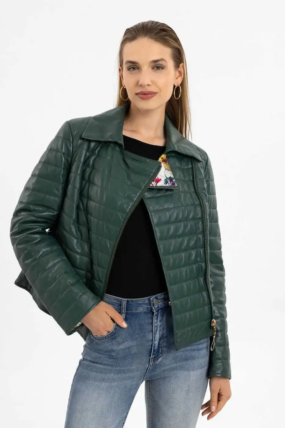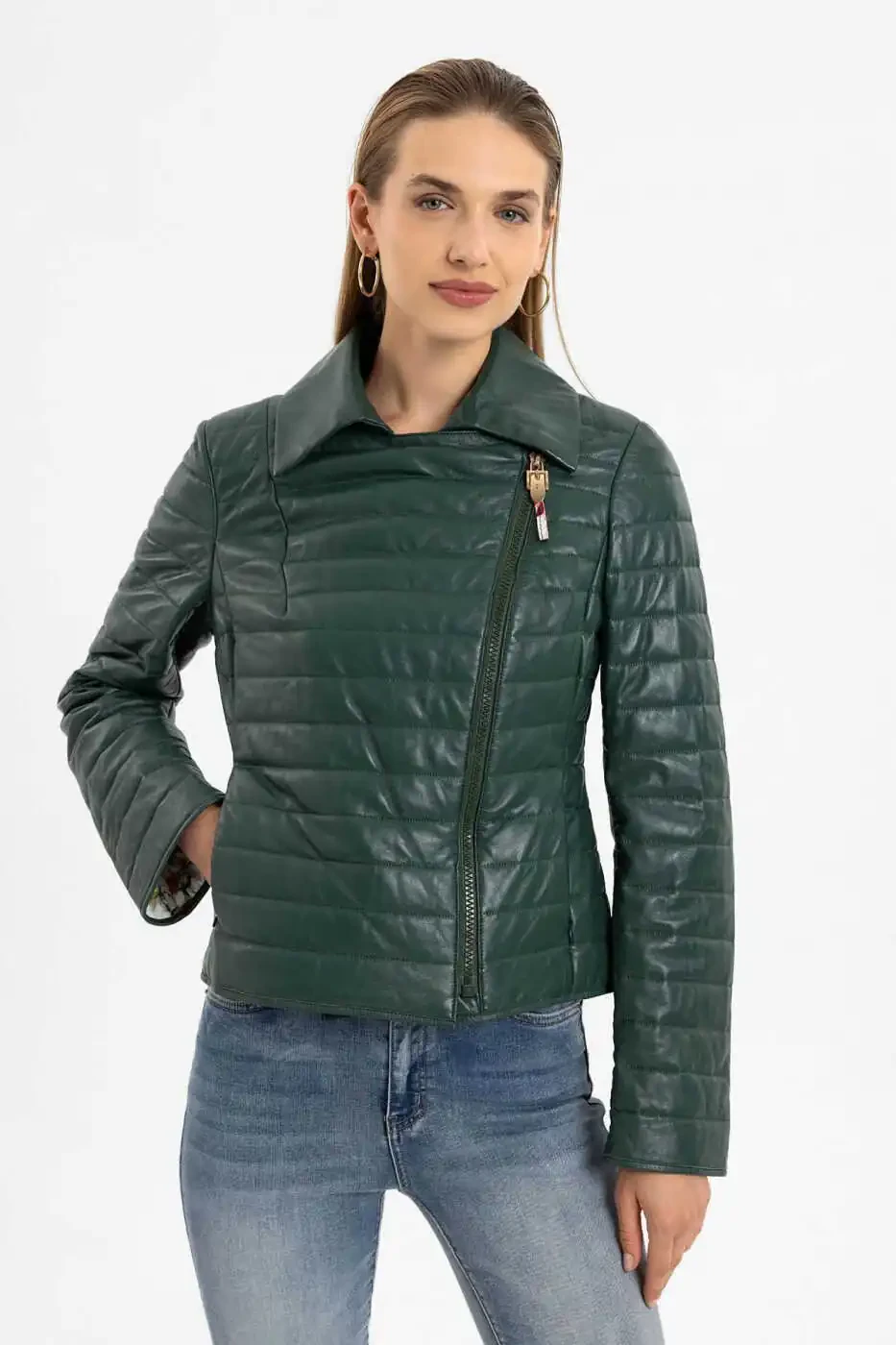 Uslubni va iliqlikni birlashtirgan Yashil Elise Ayollar uchun Qoplama Tikilgan Haqiqiy Charm Ko'ylagi, qish oylarida sizning uslubingizni namoyish qilishga yordam beradi. Yumshoq va yuqori sifatli haqiqiy charmdan tayyorlangan ko'ylagi, qoplama tikuvlari bilan ham zamonaviy ko'rinishga ega, ham sizni sovuqdan samarali himoya qiladi.