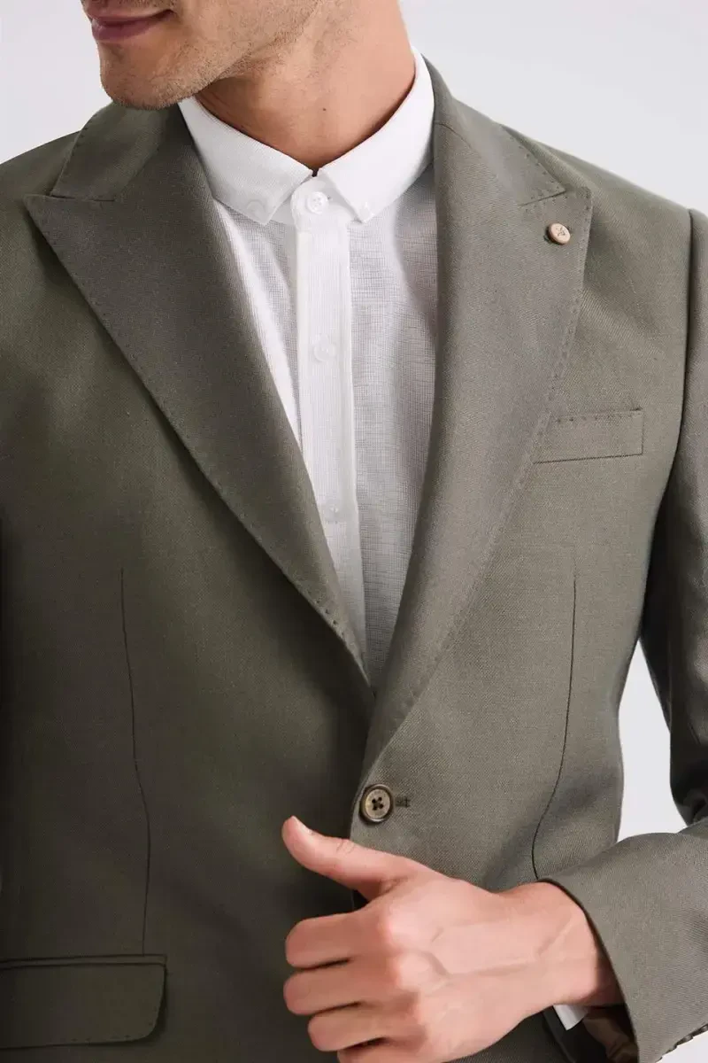 Yashil rangli, slim fit kesh qatlami tanangizga mukammal mos keladi va uning o'tkir yoqasi sizga ajoyib ko'rinish beradi. 50% zig'ir va 50% paxtadan ishlangan mato tuzilishi nafas olish imkoniyatini va qulaylikni ta'minlaydi. 187 sm bo'yli, 78 kg vaznli, 120 sm yelka, 100 sm ko'krak, 80 sm bel va 100 sm son uzunligiga ega bo'lgan modelimiz 50 o'lchamli mahsulotni kiygan.