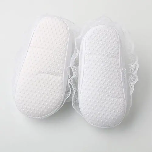 Материалы: обувь: смесь хлопка, кружевная кайма: полиэстер. Размеры: S (0-6 месяцев) длина 10,4 см, M (6-12 месяцев) длина 10,9 см, L (12-18 месяцев) длина 11,4 см. Рекомендуется ручная стирка.