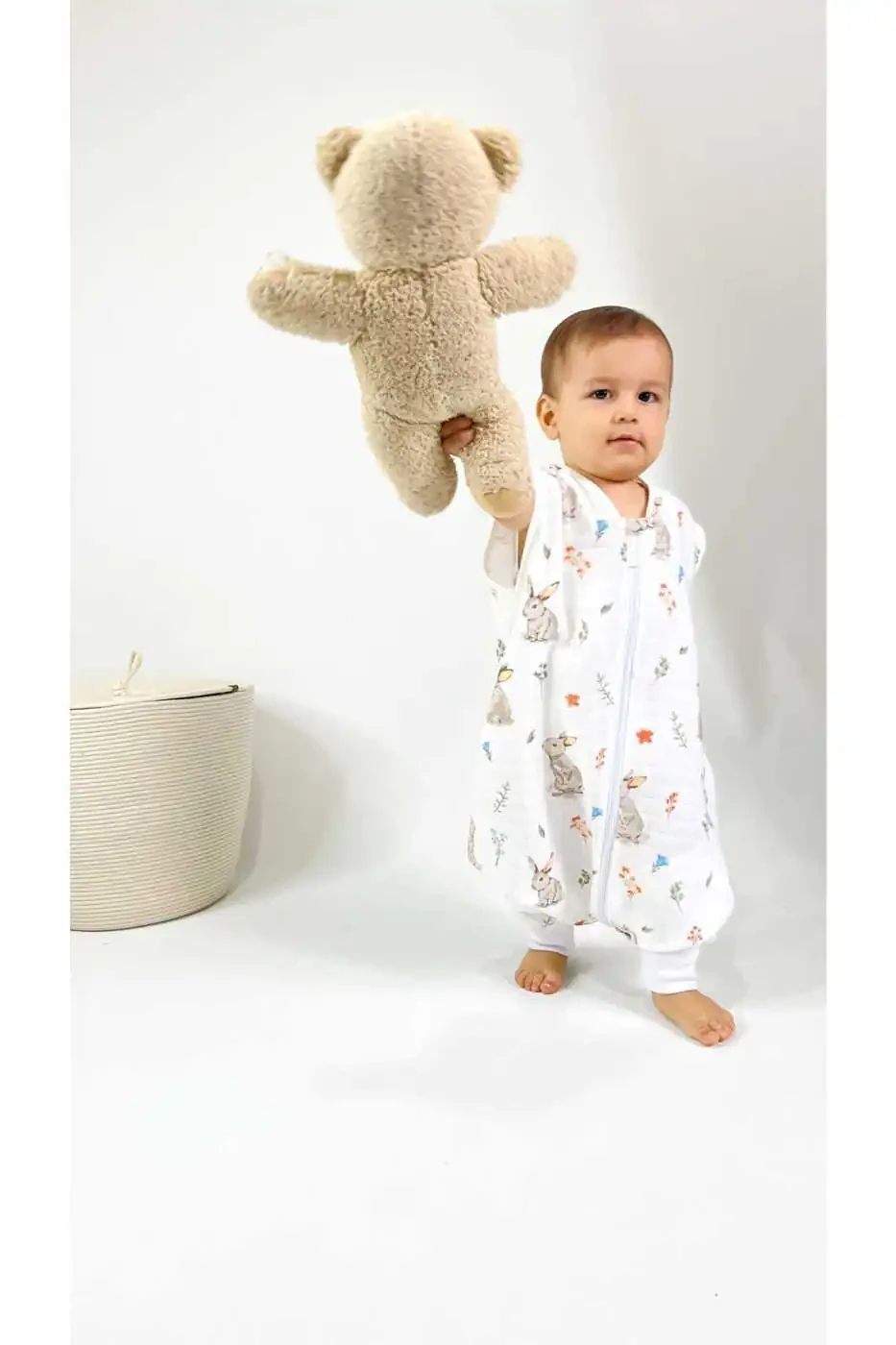 Meet our 0.5 Tog Single Layer Baby Sleep Sack, the perfect choice to keep your little one comfortable and cool during summer nights! Made from lightweight and breathable muslin fabric, this sleep sack ensures a comfortable sleep without overheating. The bunny-themed unisex design is suitable for both girls and boys.
