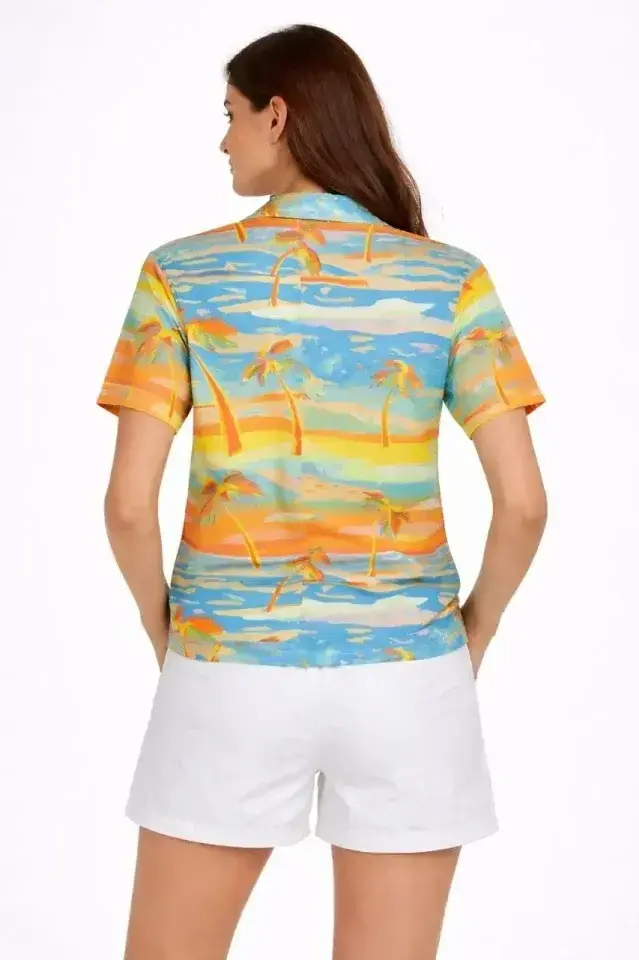 Yazlık Tropikal Desenli Gömlek Şort Takım Rahat Kalıp Tatil Kombin - Desenli