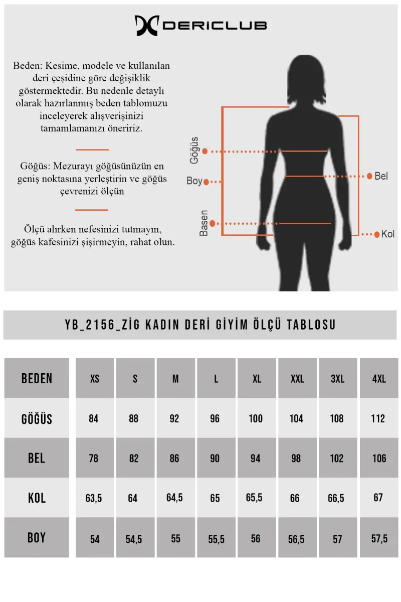 Bu ürün DERİCLUB tarafından gönderilecektir.Kampanya fiyatından satılmak üzere 5 adetten az stok bulunmaktadır.Bir ürün, birden fazla satıcı tarafından satılabilir. Birden fazla satıcı tarafından satışa sunulan ürünlerin satıcıları ürün için belirledikleri fiyata, satıcı puanlarına, teslimat statülerine, ürünlerdeki promosyonlara, kargonun bedava olup olmamasına ve ürünlerin hızlı teslimat ile teslim edilip edilememesine, ürünlerin stok ve kategorileri bilgilerine göre sıralanmaktadır.Bu üründen en fazla 10 adet sipariş verilebilir. 10 adedin üzerindeki siparişleri Trendyol iptal etme hakkını saklı tutar. Belirlenen bu limit kurumsal siparişlerde geçerli olmayıp, kurumsal siparişler için farklı limitler belirlenebilmektedir.15 gün içinde ücretsiz iade. Detaylı bilgi için [page="return_conditions"]tıklayın .YB2156 Kadın Biker Yaka Fit Deri CeketKısa dik yakası ve çıtçıtlı yaka detayı, cekete güçlü ve dinamik bir hava katıyor.Önden fermuar kapamalı tasarım modern şehir şıklığını yansıtıyor.Ceketin ön kısmında fermuarlı iki yan cep detayları estetik ve fonksiyonel bir bütünlük sunuyor.%100 gerçek deriden üretilmiştir, iç kısmı astarlıdır.Kaliteli materyali sayesinde hem dayanıklı hem de uzun ömürlü bir kullanım sağlar.Günlük kombinlerde jean ve botlarla rahatlıkla eşleşebilir.Ayrıca akşam davetlerinde elbiselerin üzerine şıklık katmak için de ideal bir parçadır.Mevsim geçişlerinde dolabınızın vazgeçilmezi olacak.Mankenin boyu 172 cm. , kilosu 57 kg olup, üzerindeki beden S''dir.