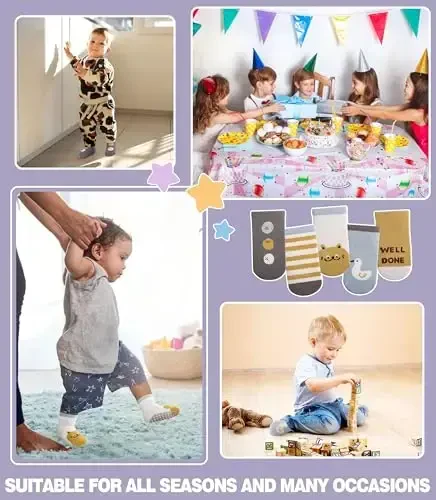 Yebing Baby Socks, bebeklerinizin ve küçük çocuklarınızın güvenliği ve konforu düşünülerek tasarlanmıştır. Ürün paketinde 5 çift farklı renk ve desende çorap bulunmaktadır. Lütfen yıkama talimatlarına uyunuz: Soğuk suda benzer renklerle yıkayınız. Ağartıcı kullanmayınız ve kuru temizleme yapmayınız. Çorapların tabanındaki kaymaz noktalar, yıkama sonrası soyulma yapmaz. Bu sayede uzun süre güvenle kullanabilirsiniz. Bebeğinizin ayak sağlığı için düzenli olarak çoraplarını değiştirmeniz önerilir. Yebing Baby Socks ile bebeğinizin ilk adımları daha güvenli ve keyifli olacak!