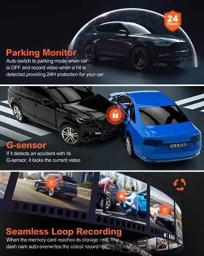 - Parking Mode: When your vehicle is parked, it automatically records when motion is detected. Keep your vehicle safe at all times.