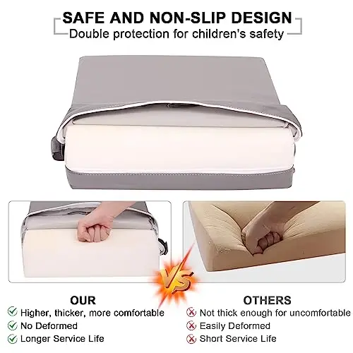 Toddler Booster Seat for Dining Table - PU Waterproof Booster Seat for Dining Table with Backrest & Adjustable Safety Belts Non-Slip Bottom Booster Chair Cushion for Kids Child Baby