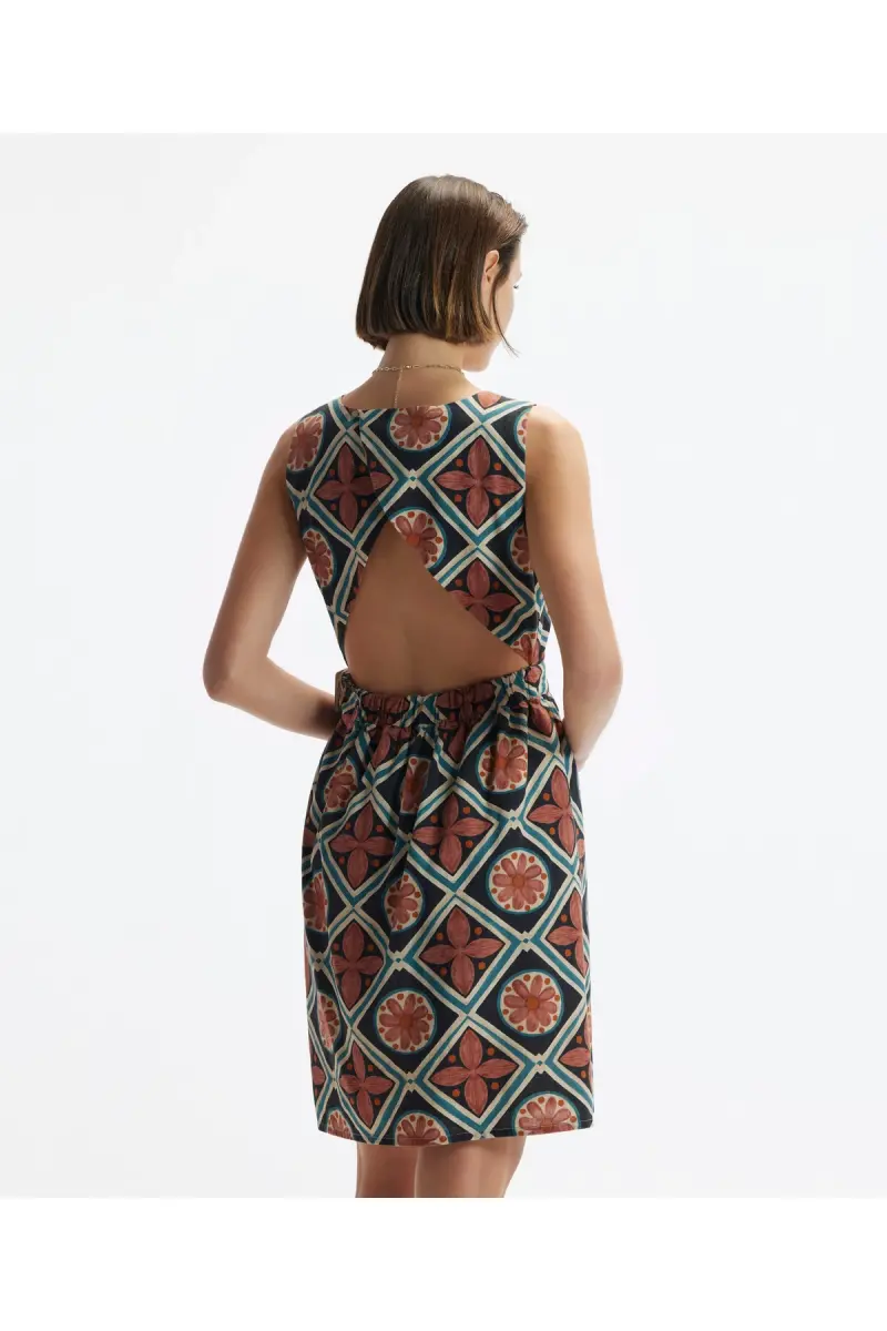 Yengil va nafas oladigan matodan tikilgan ko'ylak, kun bo'yi qulay foydalanishni ta'minlaydi. Velosiped yoqa dizayni, zamonaviy va oqlangan ko'rinish yaratish bilan birga, orqa dekoltesi esa jasur va jozibali havoni qo'shadi. Qisqa kesimi, oyoqlaringizni oldinga chiqarib, sizga o'ziga ishonchli ko'rinish beradi.