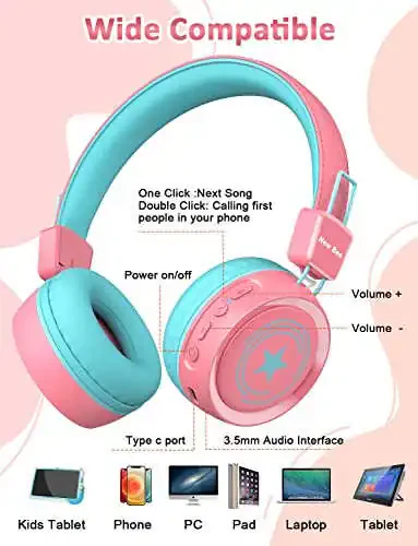 New bee Kids Bluetooth Kulaklıkları, iPad, Fire Tablet ve diğer Bluetooth özellikli cihazlarla uyumludur. Çocuklarınızın en sevdiği cihazlarla müzik dinlemesini sağlar.