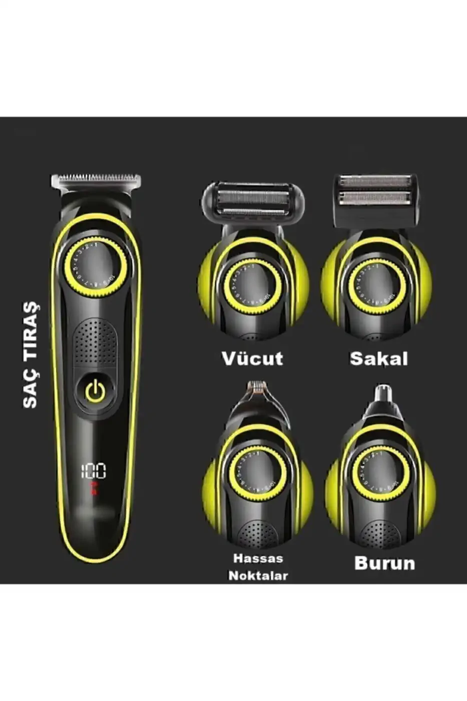 Yangi Avlod 5 Boshlı Pro Sartarosh Soch Soqol Burun Ensa Lazer Epilyatsiya Oldidan Qirqish Tıraş Mashinasi