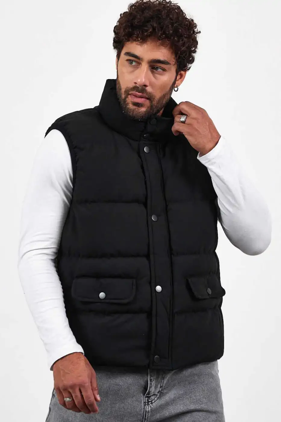 Soğuk havalarda şıklıktan ve konfordan ödün vermeyin. Yeni Sezon Erkek Astarlı Fermuar Ve Çıt Çıt Kapamalı Siyah Şişme Yelek ile stilinizi tamamlayın!