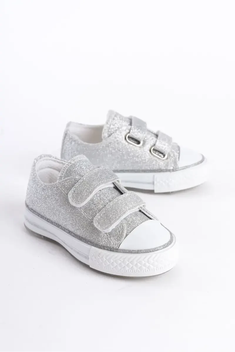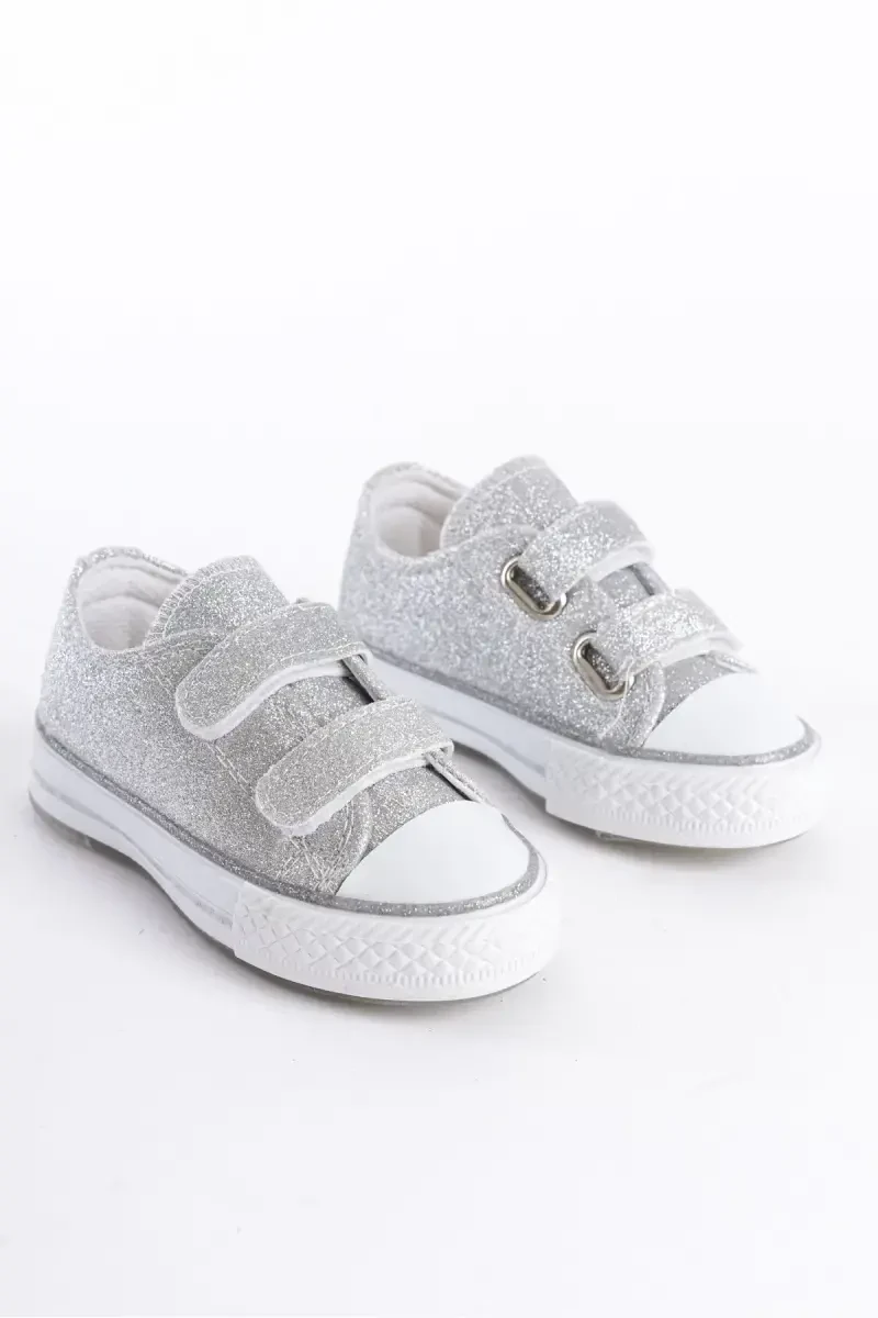 Kız çocuk ayakkabı, gümüş simli, cırtlı, ortopedik, ışıklı, yeni sezon, günlük ayakkabı, 21-30 numara, çocuk ayakkabı, kız çocuk