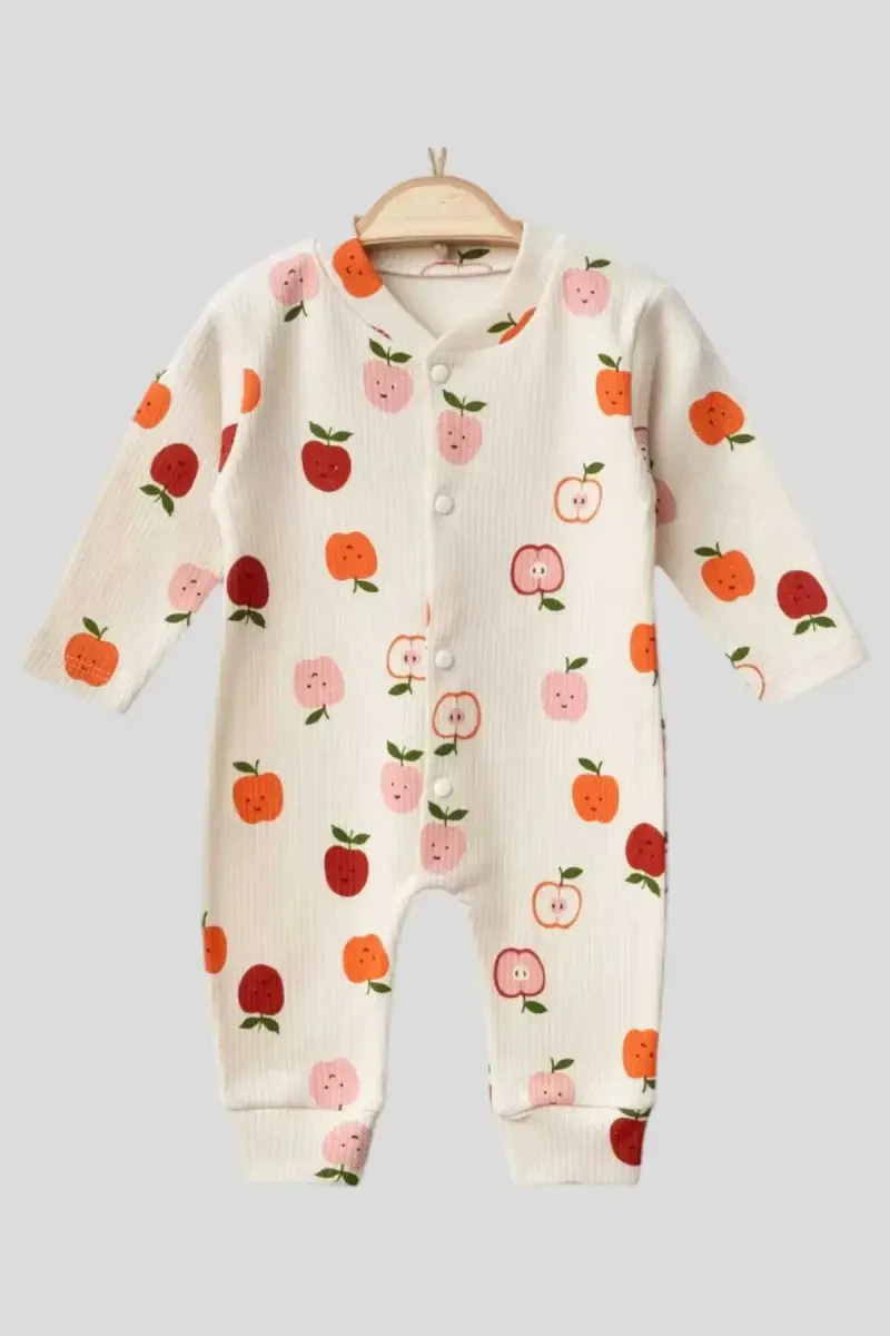 Newborn Baby Apple Print Snap-Front Baby Romper