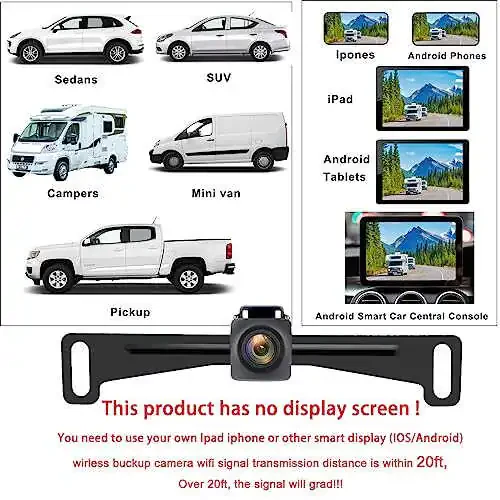 Simsiz ulanish xususiyati tufayli kamerani avtomobilingizning raqam plitasiga osongina o'rnatishingiz mumkin va simsiz signallar orqali qurilmangizga ulanishingiz mumkin. Siz tasvirni iPhone, iPad va Android qurilmalaringizda ko'rishingiz mumkin.