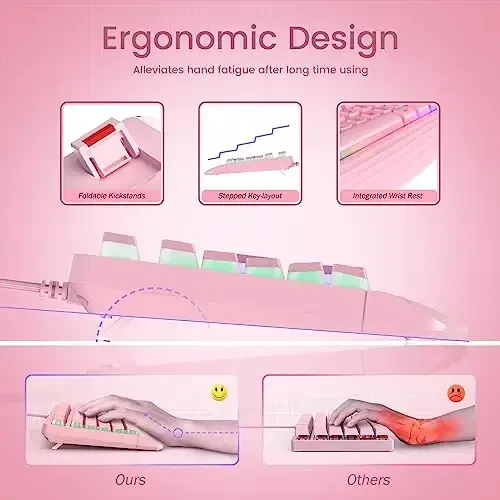 Pushti kremli kamalak LED orqa yoritgichli klaviatura: Jim, zamonaviy va yuqori unumdorlikdagi o'yin tajribasiO'yin olamiga va kundalik kompyuterdan foydalanishga rang va qulaylik qo'shadigan Yesbeaut Pink Creamy Keyboard bilan tanishing. Ushbu klaviatura nafaqat estetik ko'rinishi, balki taklif etadigan ustun xususiyatlari bilan ham e'tiborni tortadi. Pushti kremli rangi, kamalak LED yoritilishi, jim tugmachalari, bilak tayanchi, PBT tugma qopqoqlari, anti-ghosting texnologiyasi va suv o'tkazmaydigan dizayni bilan ham o'yin ixlosmandlarining, ham professionallarning umidlarini oqlaydi.Yesbeaut Pink Creamy Keyboard, zamonaviy va nafis dizayni bilan ish stolingizning yulduzi bo'ladi. Pushti kremli rang ohangi klaviaturaga iliq va jozibali muhit bag'ishlasa, kamalak LED yoritilishi bilan vizual bayram taqdim etadi. Turli yoritish rejimlari tufayli klaviaturangizning chiroqlarini xohlaganingizcha sozlash, o'yin tajribangizni yoki ish muhitingizni shaxsiylashtirishingiz mumkin. Jim tugma mexanizmi ham o'yin o'ynashda, ham yozishda bezovta qiluvchi bosish tovushlarini yo'q qilib, diqqatni jamlashga yordam beradi.Ushbu klaviatura nafaqat ko'rinishi, balki taklif qiladigan qulaylik bilan ham ajralib turadi. Ergonomik dizayni va unga qo'shilgan bilak tayanchi tufayli uzoq muddatli foydalanishda ham bilaklaringizning charchashiga yo'l qo'ymaydi. Bilak tayanchi bilaklaringizni to'g'ri holatda ushlab turadi, og'riq va taranglikni kamaytiradi, shuning uchun siz uzoqroq vaqt davomida rohatlanib ishlashingiz yoki o'yin o'ynashingiz mumkin. PBT tugma qopqoqlari ABS tugma qopqoqlariga qaraganda bardoshliroq va uzoq muddatli foydalanishda ham porlamaydi. Tugmalar ustidagi bosmalar o'chishga chidamli, shuning uchun klaviaturangizning ko'rinishi uzoq vaqt davomida birinchi kundagidek qoladi.Yesbeaut Pink Creamy Keyboard o'yin unumdorligingizni eng yuqori darajaga ko'tarish uchun mo'ljallangan. Anti-ghosting texnologiyasi tufayli bir vaqtning o'zida bir nechta tugmani bossangiz ham, barcha buyruqlaringiz to'g'ri aniqlanadi. Ushbu xususiyat, ayniqsa, tez sur'atli o'yinlarda sizga katta ustunlik beradi. Klaviatura USB kabeli orqali kompyuteringizga ulanadi va tak-ishga tushirish xususiyati tufayli hech qanday drayverni o'rnatmasdan darhol foydalanishga tayyor. Suv o'tkazmaydigan dizayni tasodifiy suyuqlik to'kilishidan klaviaturangizni himoya qiladi. Shu tarzda, klaviaturangizning ishlash muddati uzayadi va kutilmagan baxtsiz hodisalardan xavotirda bo'lmaysiz.Xulosa qilib aytganda, Yesbeaut Pink Creamy Keyboard o'zining zamonaviy dizayni, yuqori unumdorligi va taklif qiladigan qulayligi bilan ham o'yin ixlosmandlari, ham professionallar uchun ideal tanlovdir. Pushti kremli rangi, kamalak LED yoritilishi, jim tugmachalari, bilak tayanchi, PBT tugma qopqoqlari, anti-ghosting texnologiyasi va suv o'tkazmaydigan dizayni bilan umidlaringizni to'liq oqlaydi.