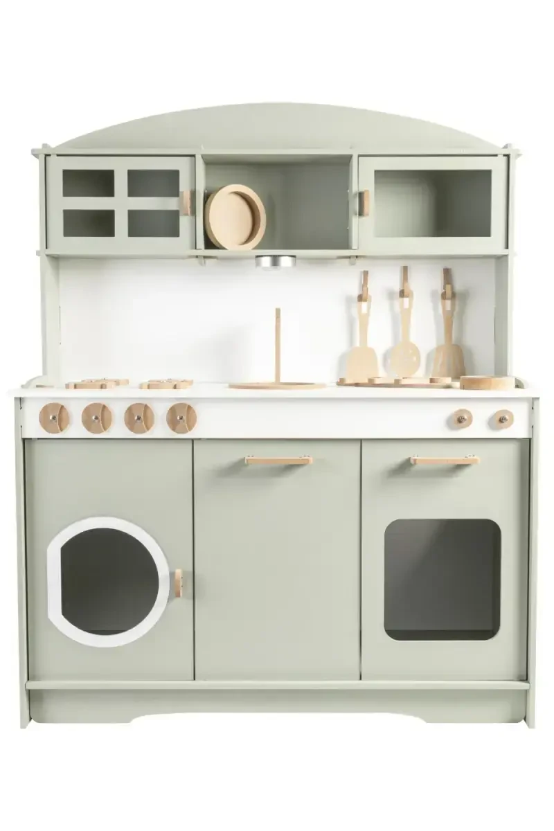 Çocukların hayal güçlerini harekete geçiren ve mutfak becerilerini geliştirmelerine olanak tanıyan Yeşil Ahşap Oyuncak Mutfak Seti, minik şeflerin vazgeçilmezi olmaya aday! Bu 9 parça servis seti ile çocuklar, arkadaşlarıyla veya aileleriyle keyifli oyunlar oynayarak sosyalleşme imkanı bulacaklar. Ahşap malzemeden üretilmiş olması, hem dayanıklılık sağlar hem de çocukların sağlığına zarar verecek herhangi bir madde içermediğinden güvenle kullanılabilir. LED ışıklı detayları ile gerçek bir mutfak deneyimi sunan bu oyuncak seti, çocukların ilgisini çekecek ve oyun saatlerini daha da eğlenceli hale getirecek. Çocukların motor becerilerini geliştirmelerine yardımcı olurken, aynı zamanda yaratıcılıklarını da teşvik eder. 2 ila 7 yaş arasındaki çocuklar için ideal olan bu mutfak seti, uzun süreli oyun keyfi sunar. Ürün demonte olarak gönderilir ve kolay kurulumu sayesinde kısa sürede kullanıma hazır hale gelir. Toplam 59 parçadan oluşan bu set, çocukların hayal dünyasında sınırsız tarifler yaratmasına olanak tanır. Yeşil rengi ve şık tasarımı ile her çocuk odasına uyum sağlar. Çocuklar bu mutfak seti ile hem eğlenecek hem de öğrenecekler. Ebeveynler için de iç rahatlığı sunan bu ürün, çocukların güvenliği düşünülerek tasarlanmıştır. Onların gelişimine katkıda bulunacak, eğlenceli ve eğitici bir oyuncak arayanlar için ideal bir seçimdir. Bu mutfak seti, çocukların sosyalleşmesine, yaratıcılıklarını geliştirmesine ve el-göz koordinasyonlarını güçlendirmesine yardımcı olurken, aynı zamanda onlara gerçek bir mutfak deneyimi yaşatır. Hobby House kalitesiyle sunulan bu ürün, uzun yıllar boyunca güvenle kullanabileceğiniz bir oyuncaktır.