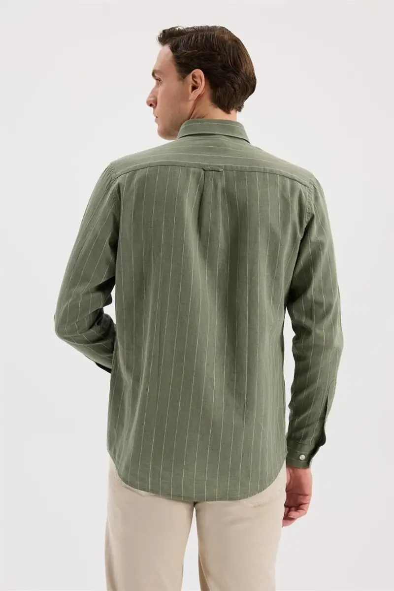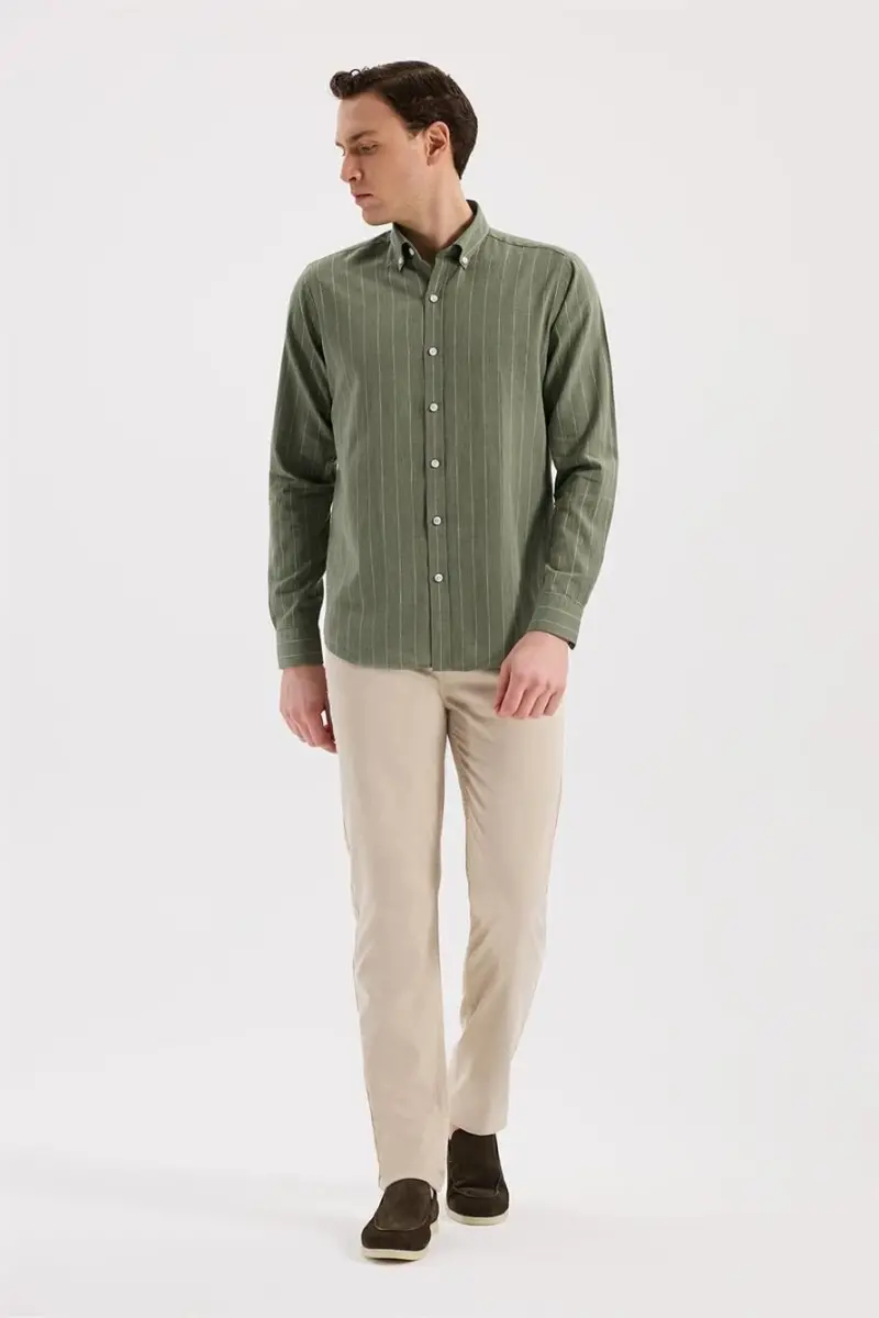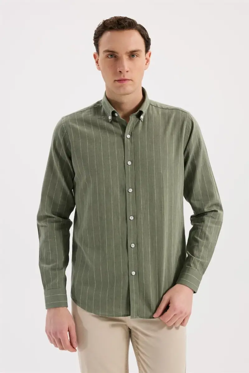 Yeşil Comfort Fit Düğmeli Yaka Pamuklu Gömlek