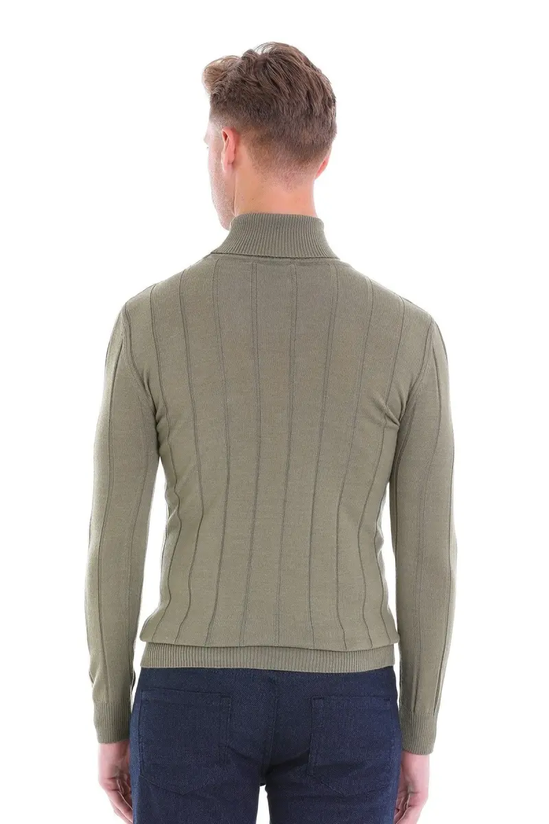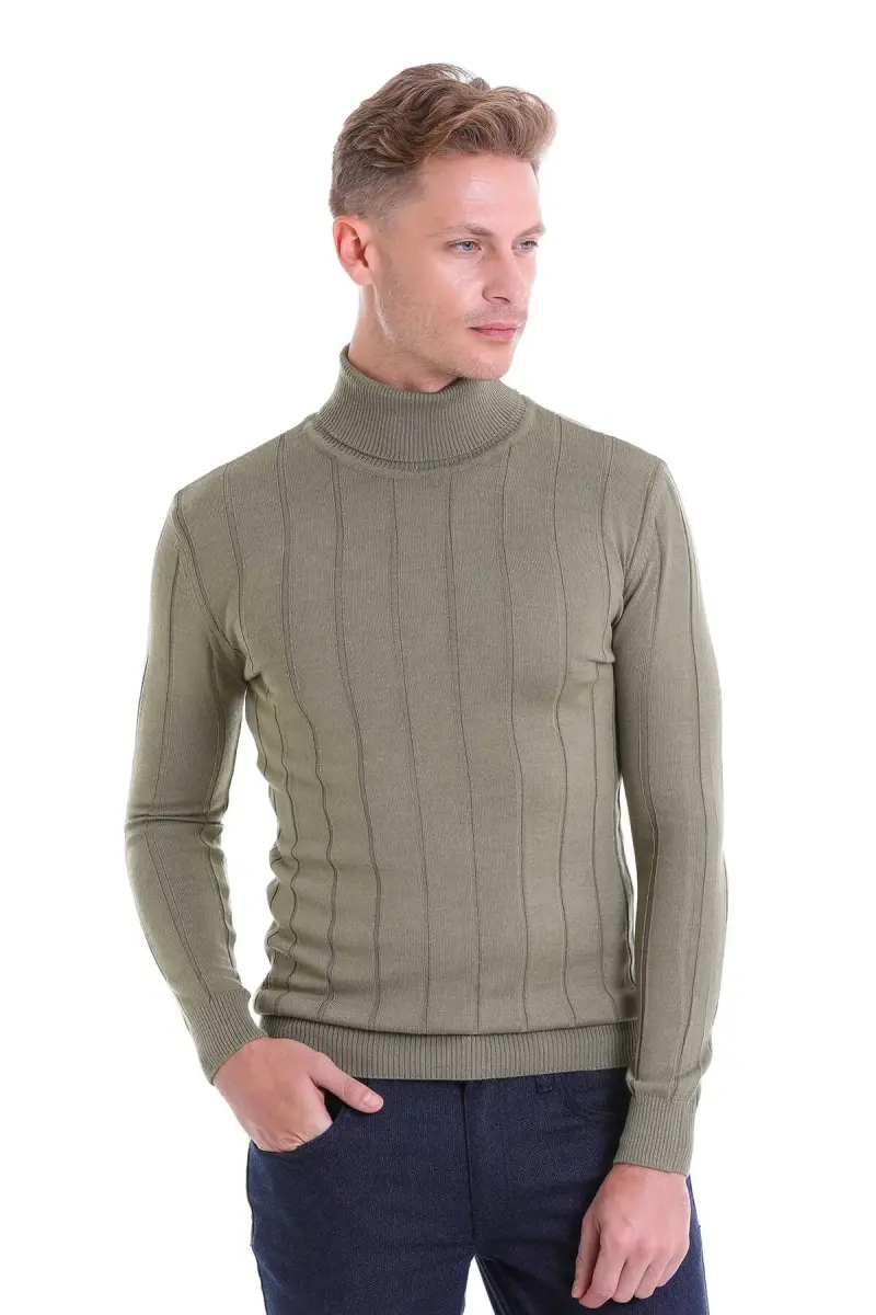 Yeşil Comfort Fit Fitilli Balıkçı Yaka Yünlü Yün Kazak-Yeşil